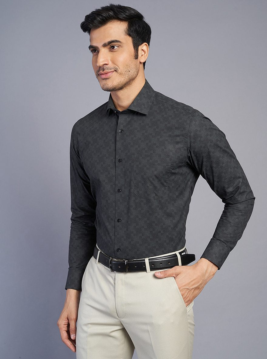 Grey Printed Slim Fit Formal Shirt | Greenfibre