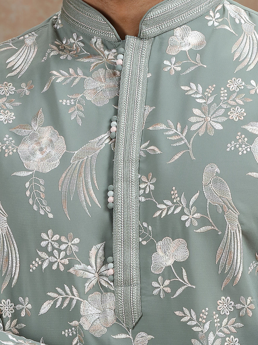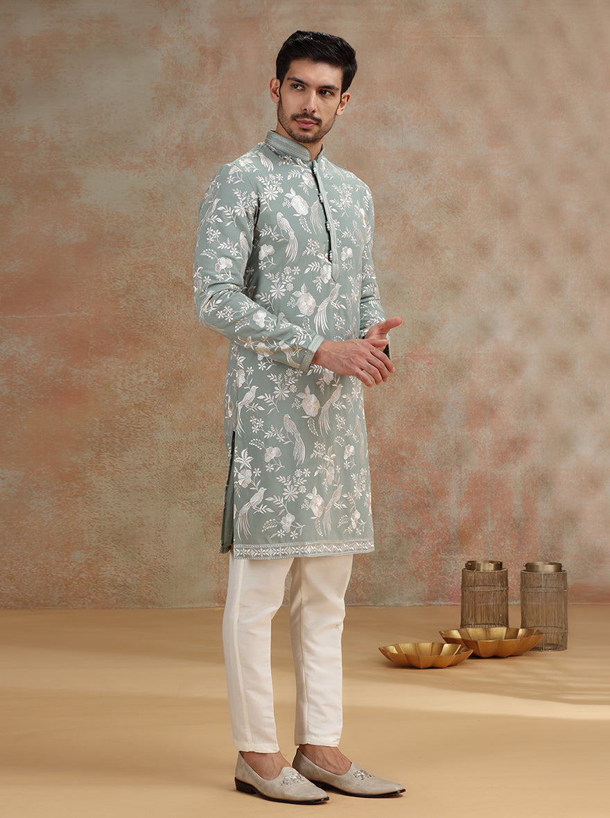 Green Printed and Embroidered Kurta Pajama | JB X JB