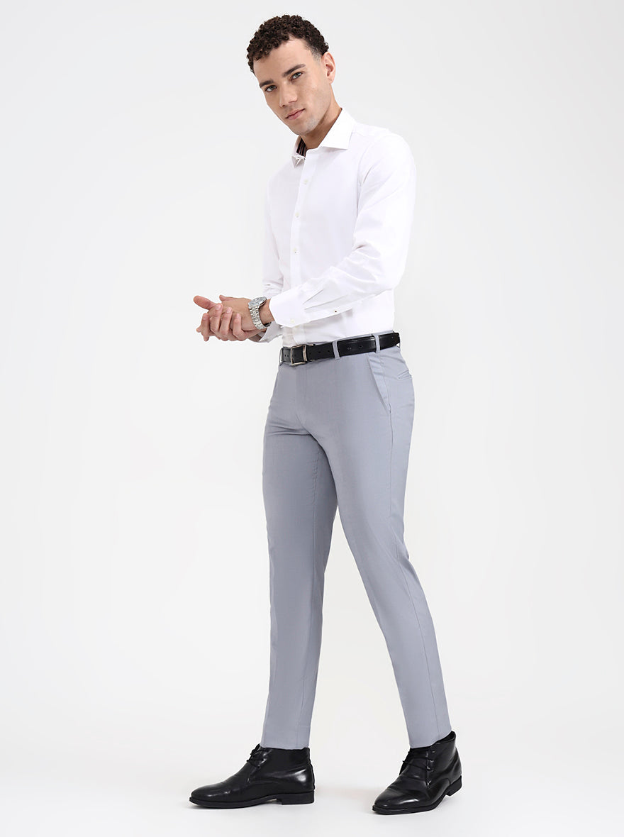 Grey Solid Super Slim Fit Formal Trouser | JB X JB