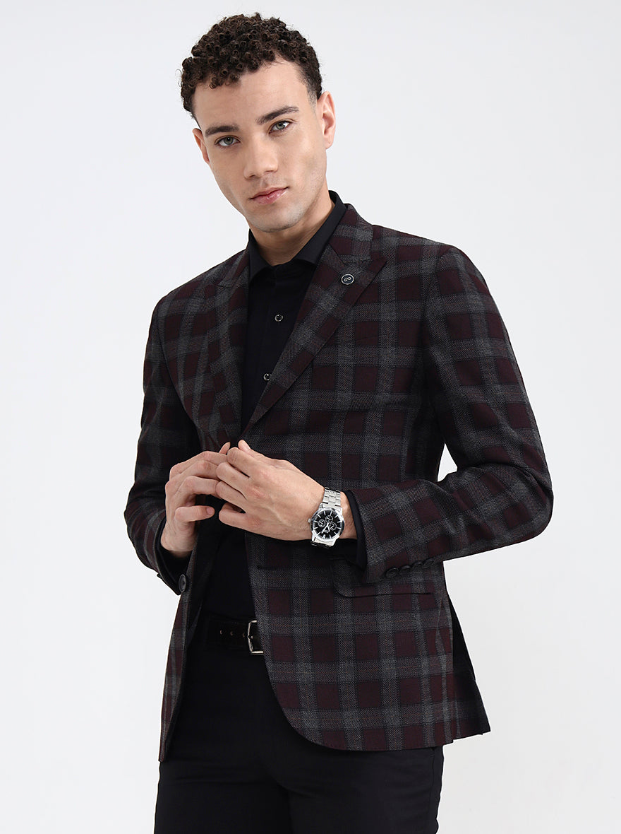Details: Step up your style game with Wyre's stunning maroon checked blazer, a must-have addition to any fashion-forward man's wardrobe. Expertly crafted from premium poly viscose fabric, this blazer offers not only a smooth and comfortable feel but also exceptional durability, ensuring you look sharp for every occasion. The sophisticated checked pattern in a rich maroon hue adds a touch of elegance to your ensemble, making it versatile enough for both formal and casual settings. Designed with a regular fit, this blazer provides a flattering silhouette that complements all body types, while the full sleeves offer a polished and complete look. Whether you're heading to a business meeting, a dinner date, or a special celebration, Wyre's checked blazer is your go-to choice for effortless elegance. Pair it with tailored trousers for a refined appearance or dress it down with jeans for a more relaxed vibe. With Wyre, embrace a style that speaks confidence and sophistication