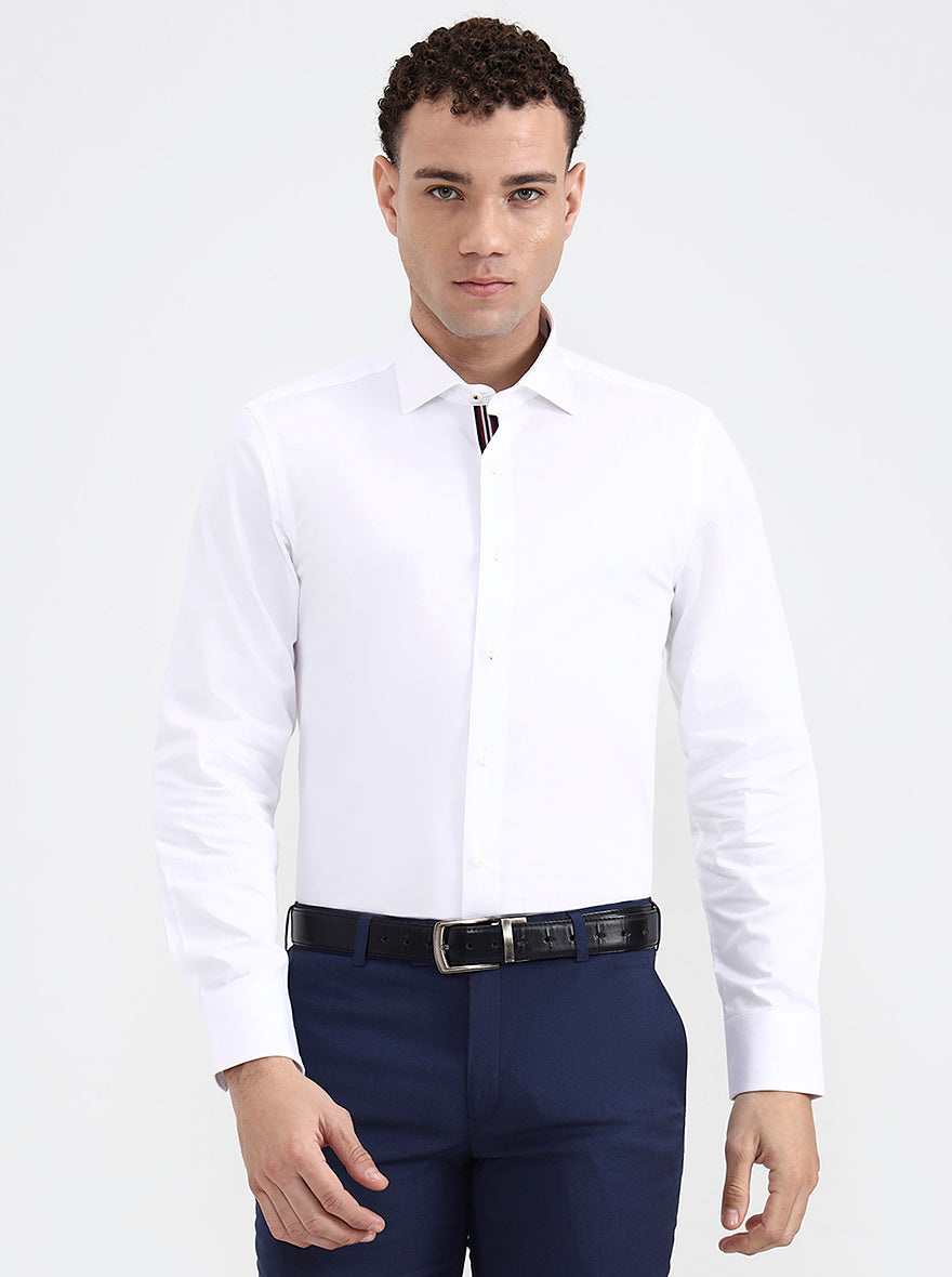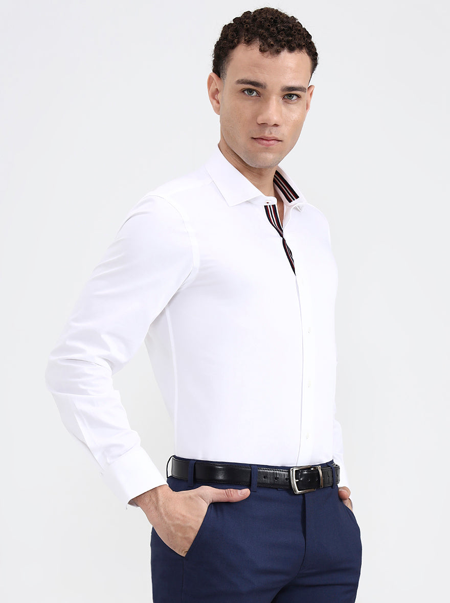 White Solid Slim Fit Party Wear Shirt | JB X JB