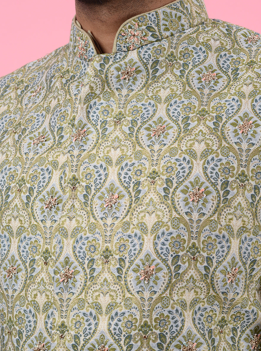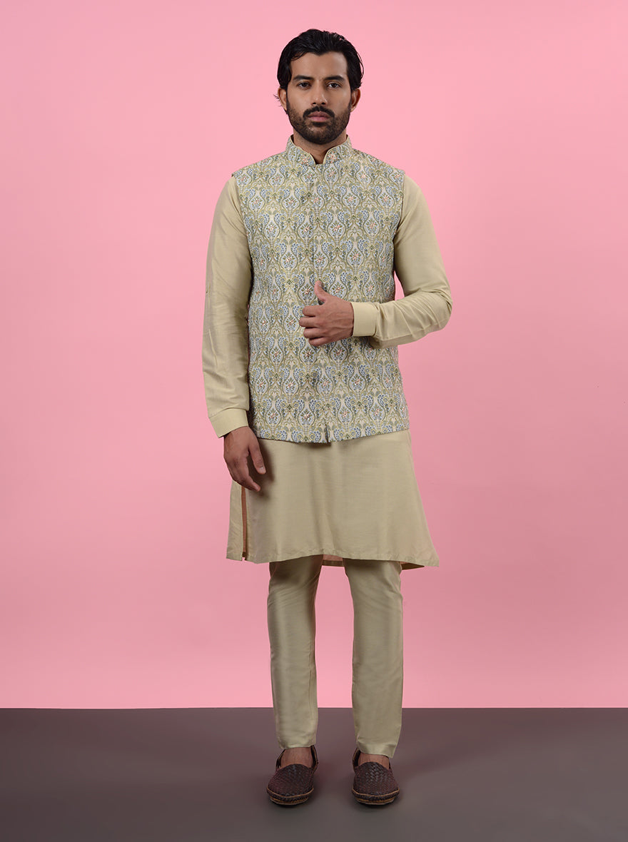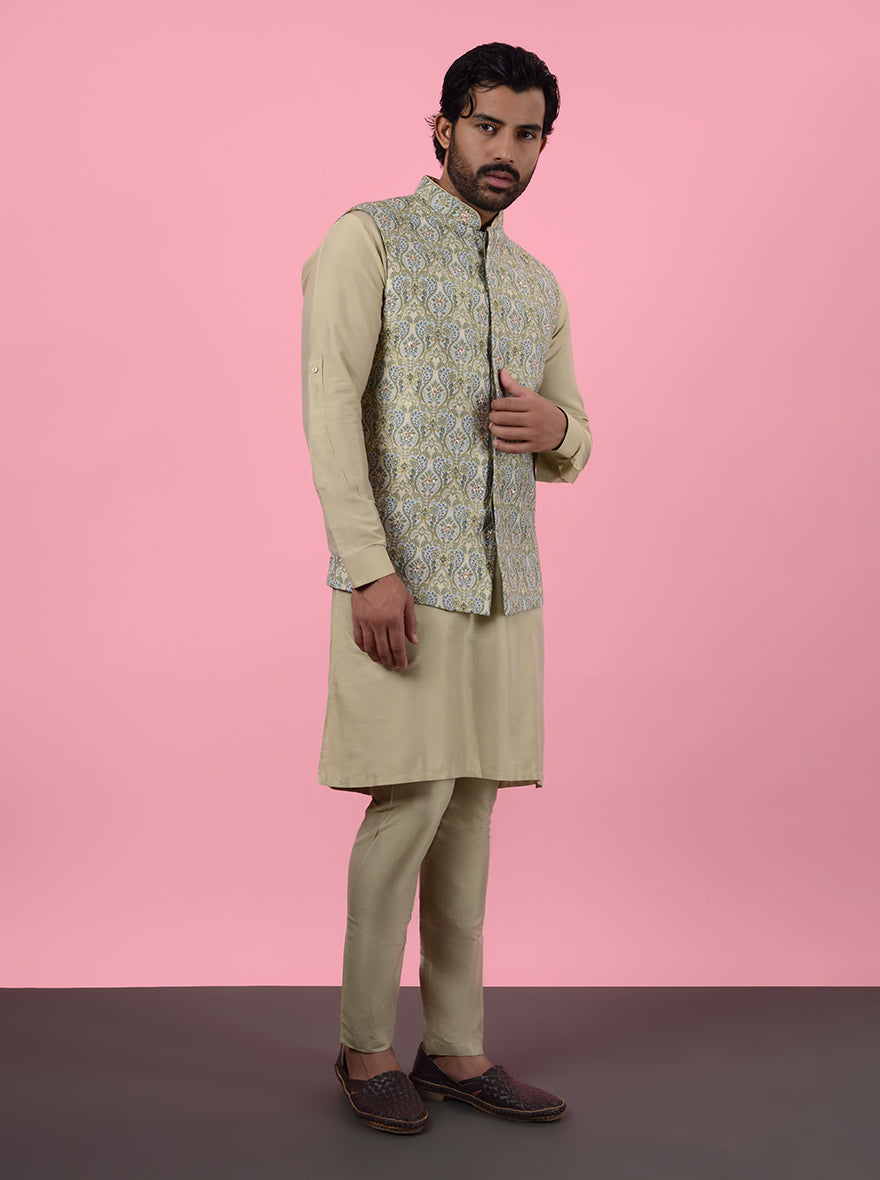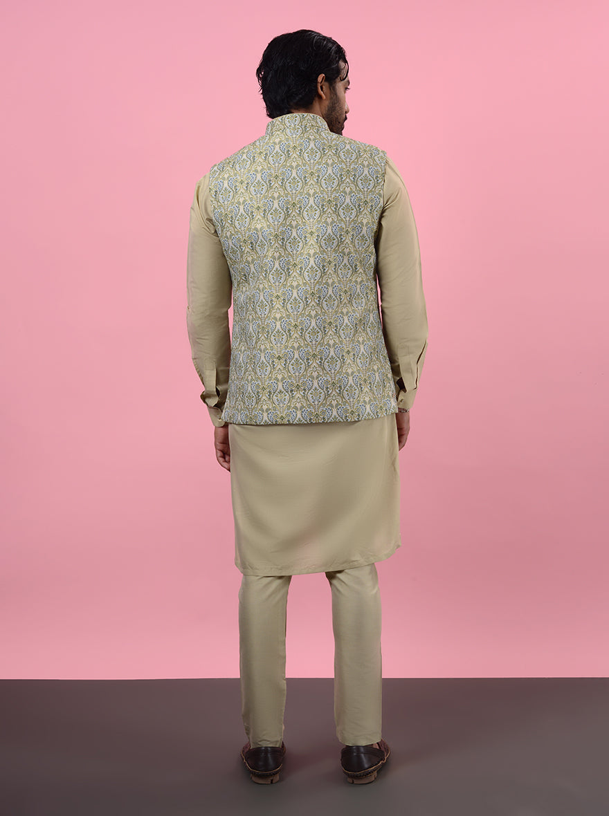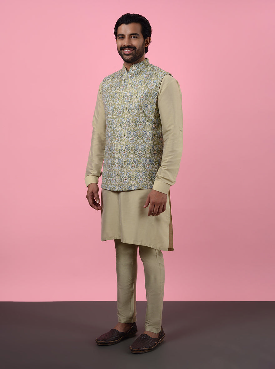 Details: Step into the spotlight with TULA's Olive Green Kurta Set with Koti designed for the fashion-conscious. With its Self Design and luxurious Silk Blend fabric, this Regular Fit piece ensures both comfort and style for any special event. Featuring sadi, resham work , hand that adds a sophisticated flair, it's an ideal choice for anyone looking to make a statement.