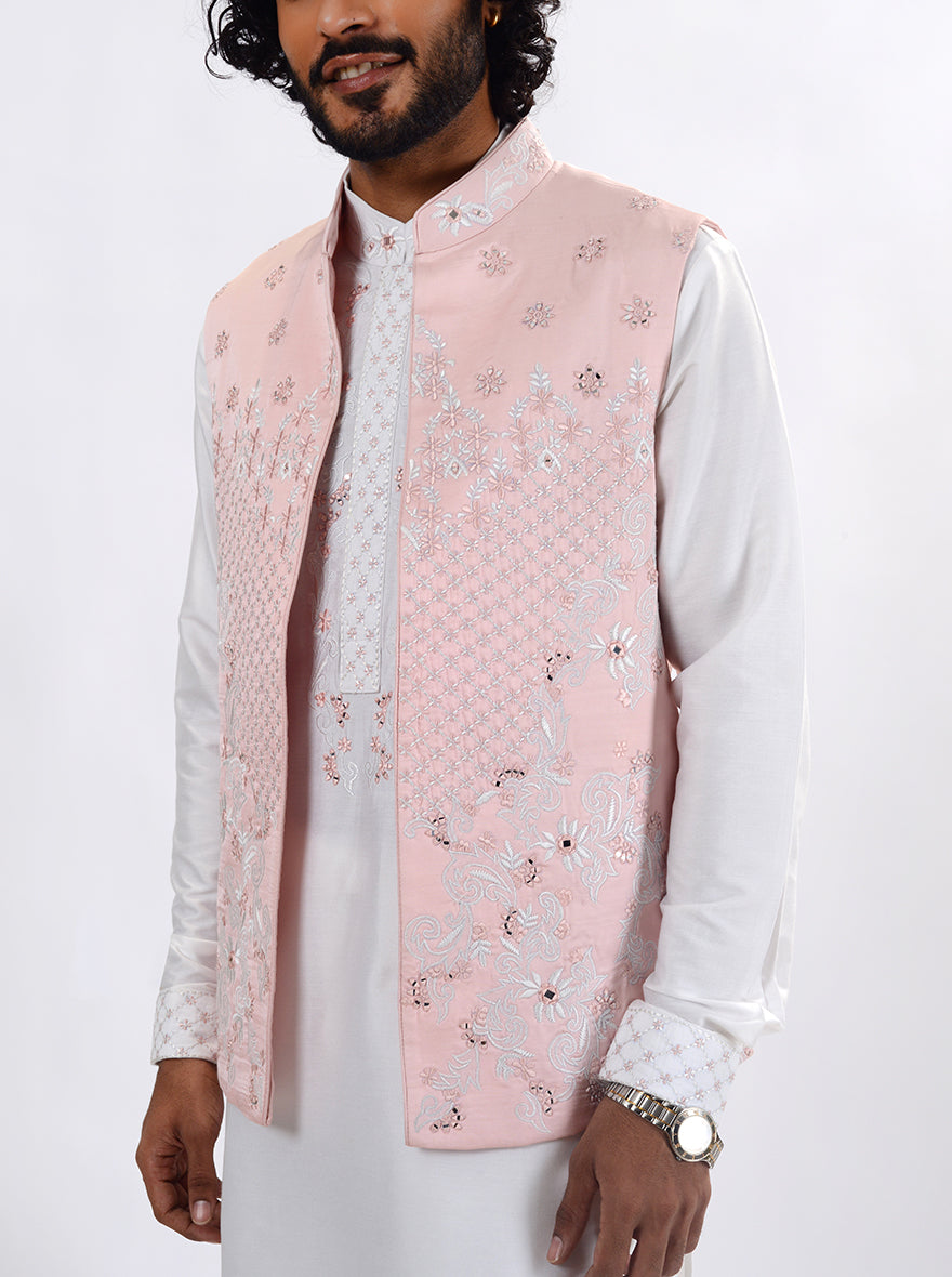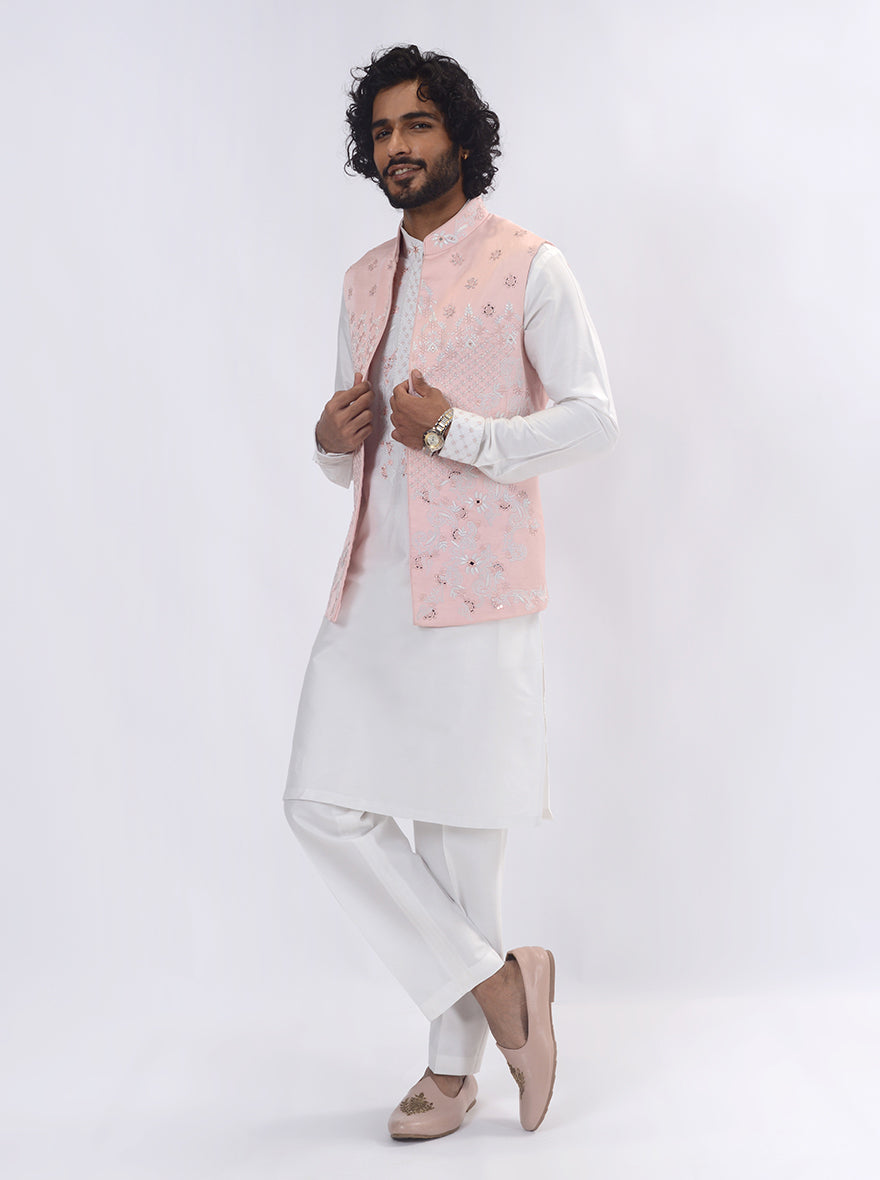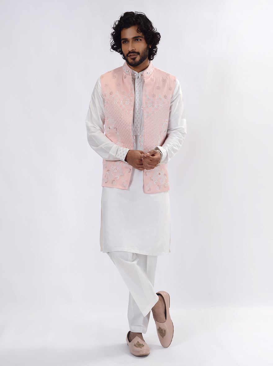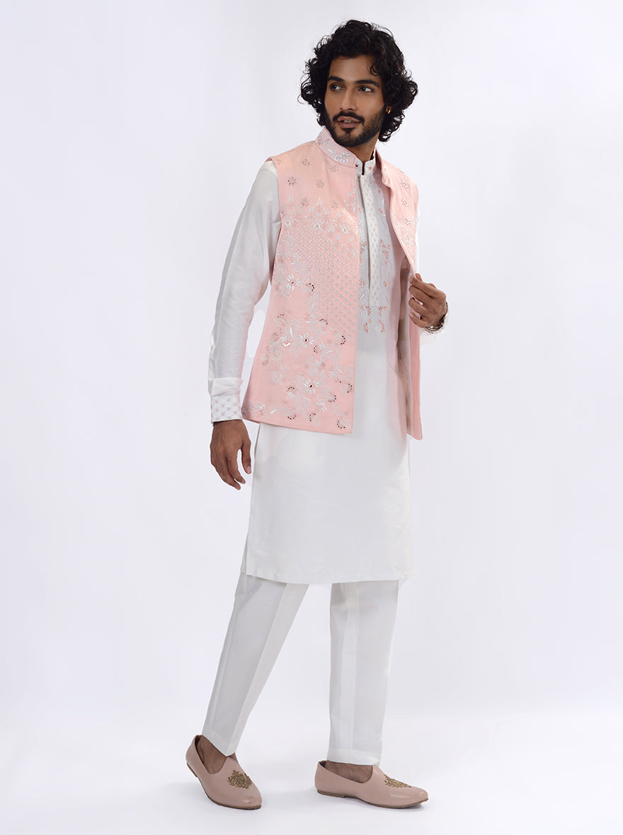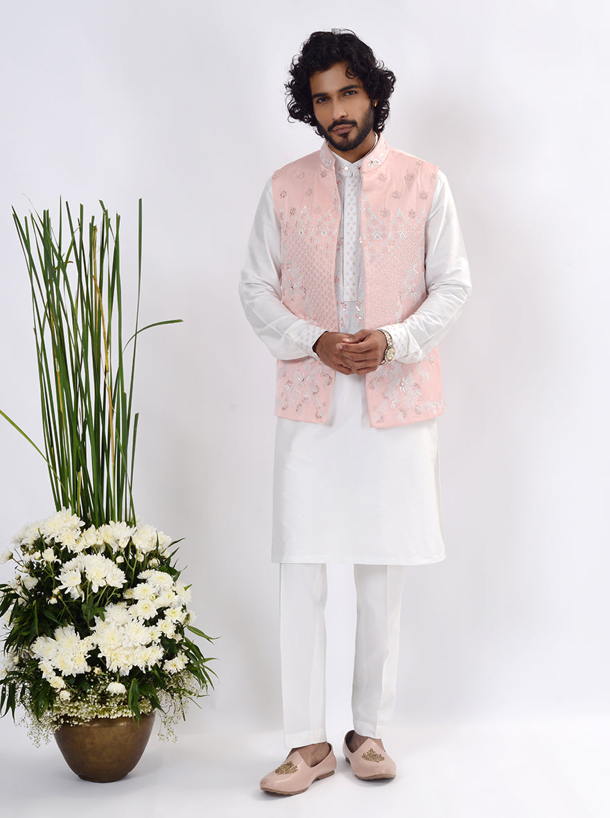 Details: Elevate your wardrobe with our exclusive Kurta Set with Koti collection, featuring Silk Blend fabric and Embroidered design. The Mandarin collar and Full Sleeve add a touch of contemporary elegance, while the Resham, Mirror provides intricate detailing perfect for gruh shanti, haldi. Whether for weddings, receptions, or festive events, this Kurta Set with Koti is a versatile choice that combines tradition and modernity.