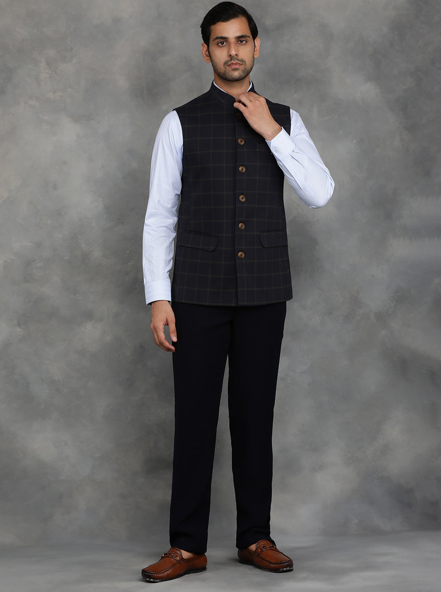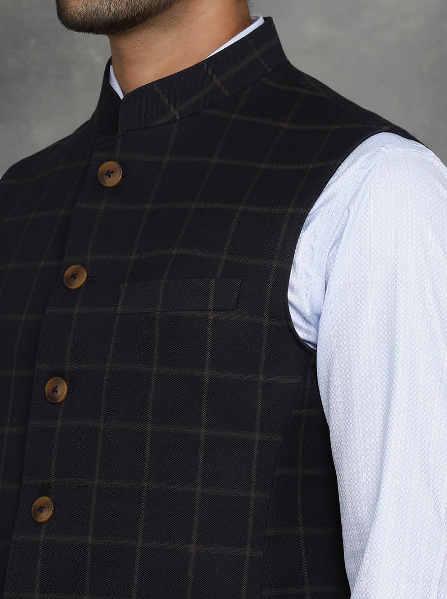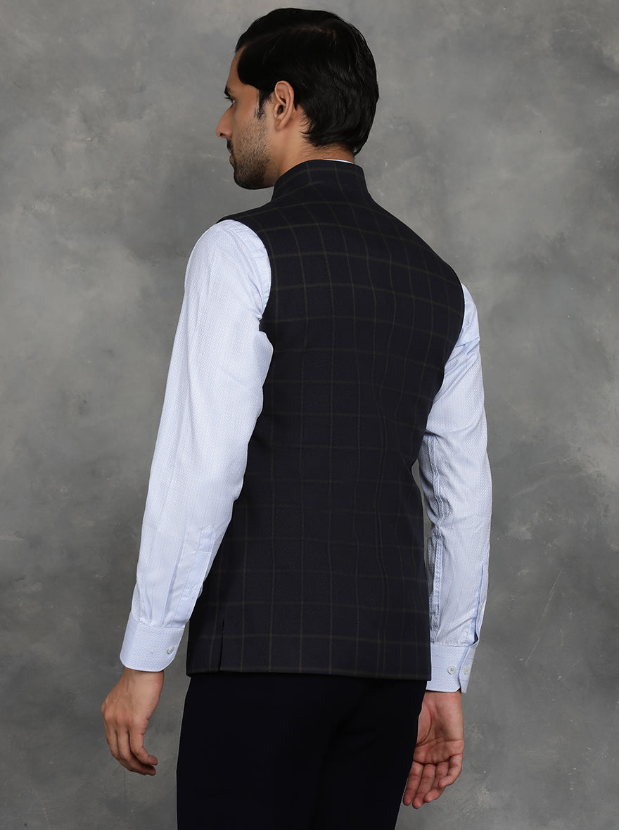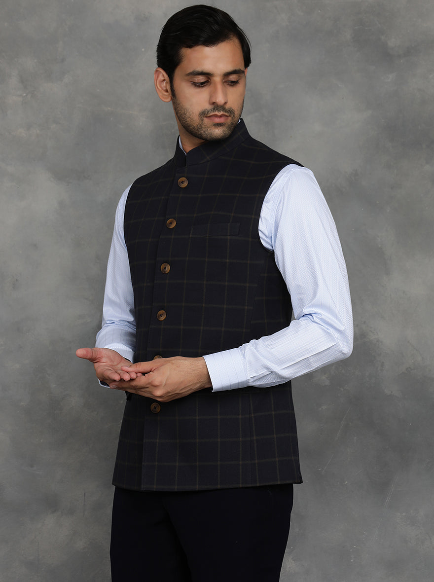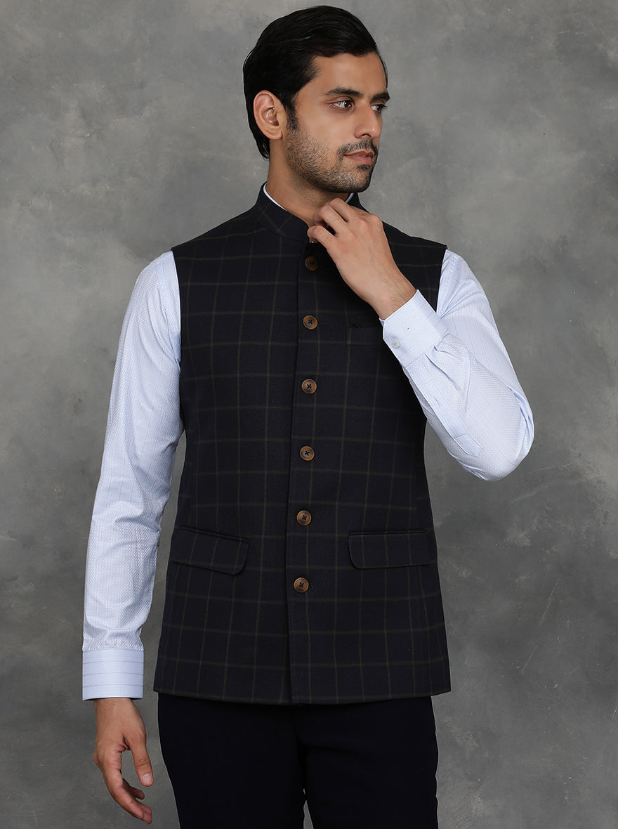 Navy Blue Checked Regular Fit Modi Jacket | JadeBlue