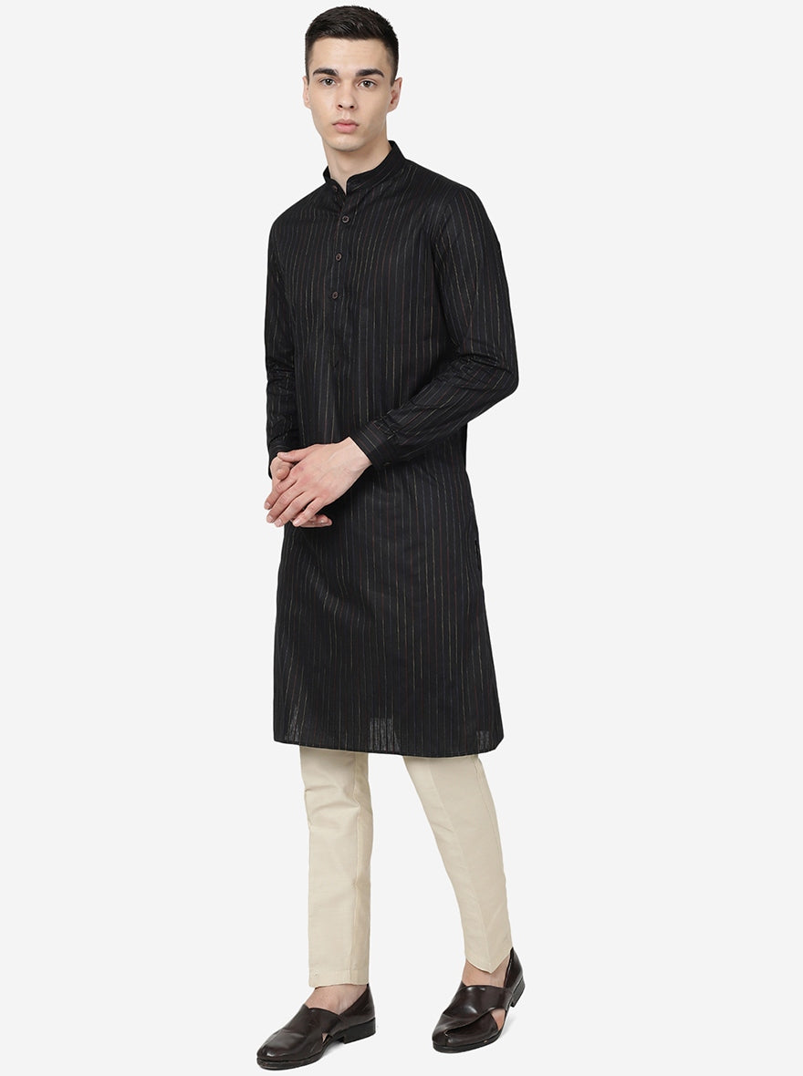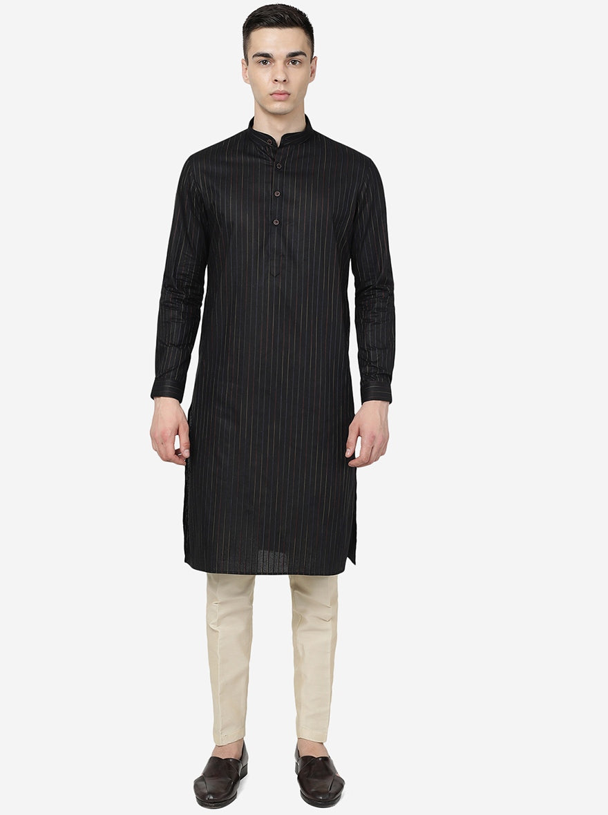 Details: This Charcoal Black Modi Kurta from the latest collection from MODI KURTA is crafted for versatility. Manufactured with Cotton Blend fabric that is pleasing to the touch, excellent crease resistance. Featuring four buttons for closure, a Mandarin collar, and full sleeves with cuffs. Offers a Regular fit for Kurta with a Checked pattern. Compliment it with Mojri and pajama to finish this look.