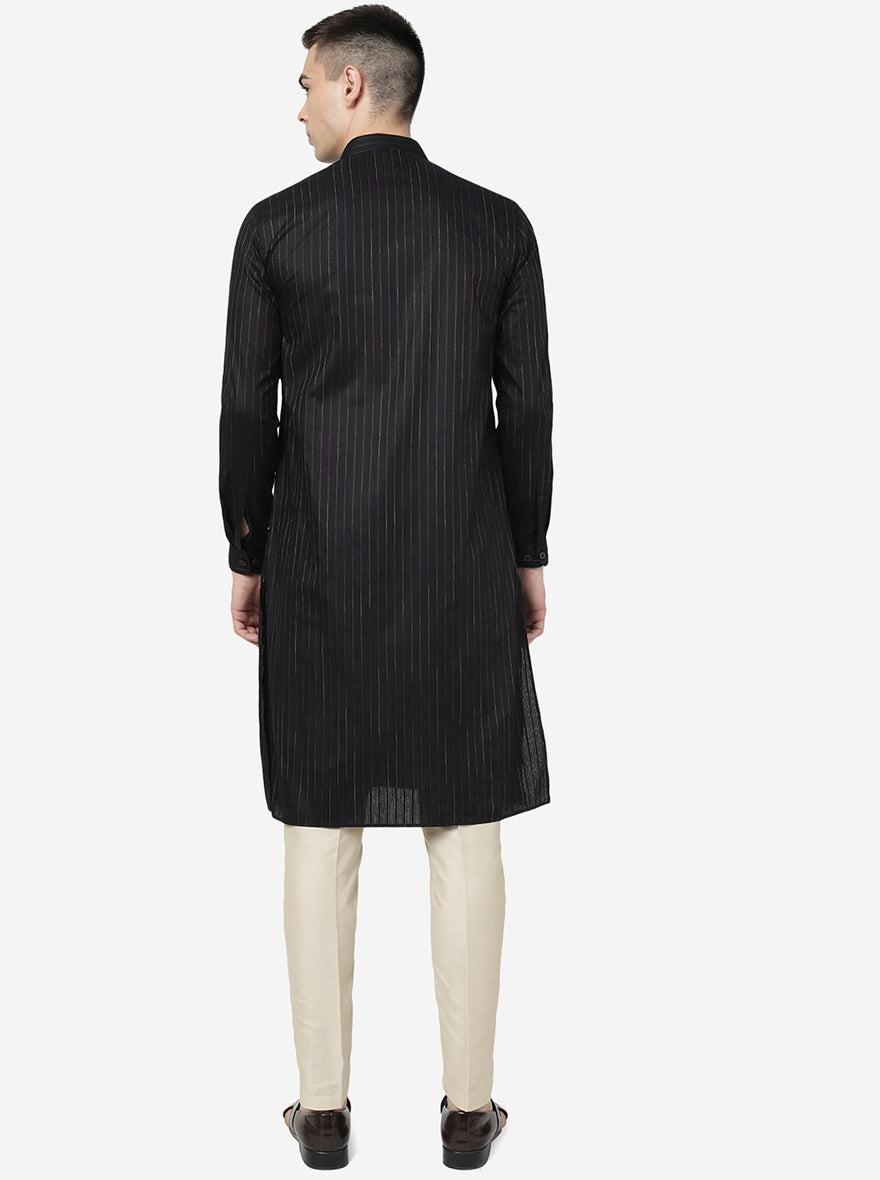 Charcoal Black Checked Regular Fit Modi Kurta | JadeBlue