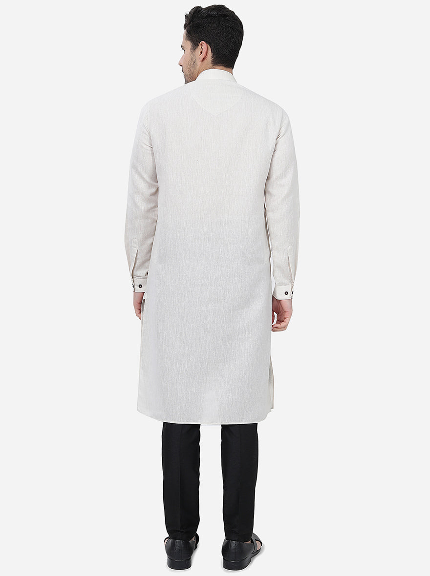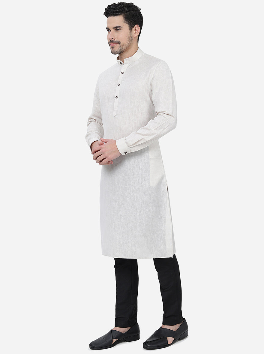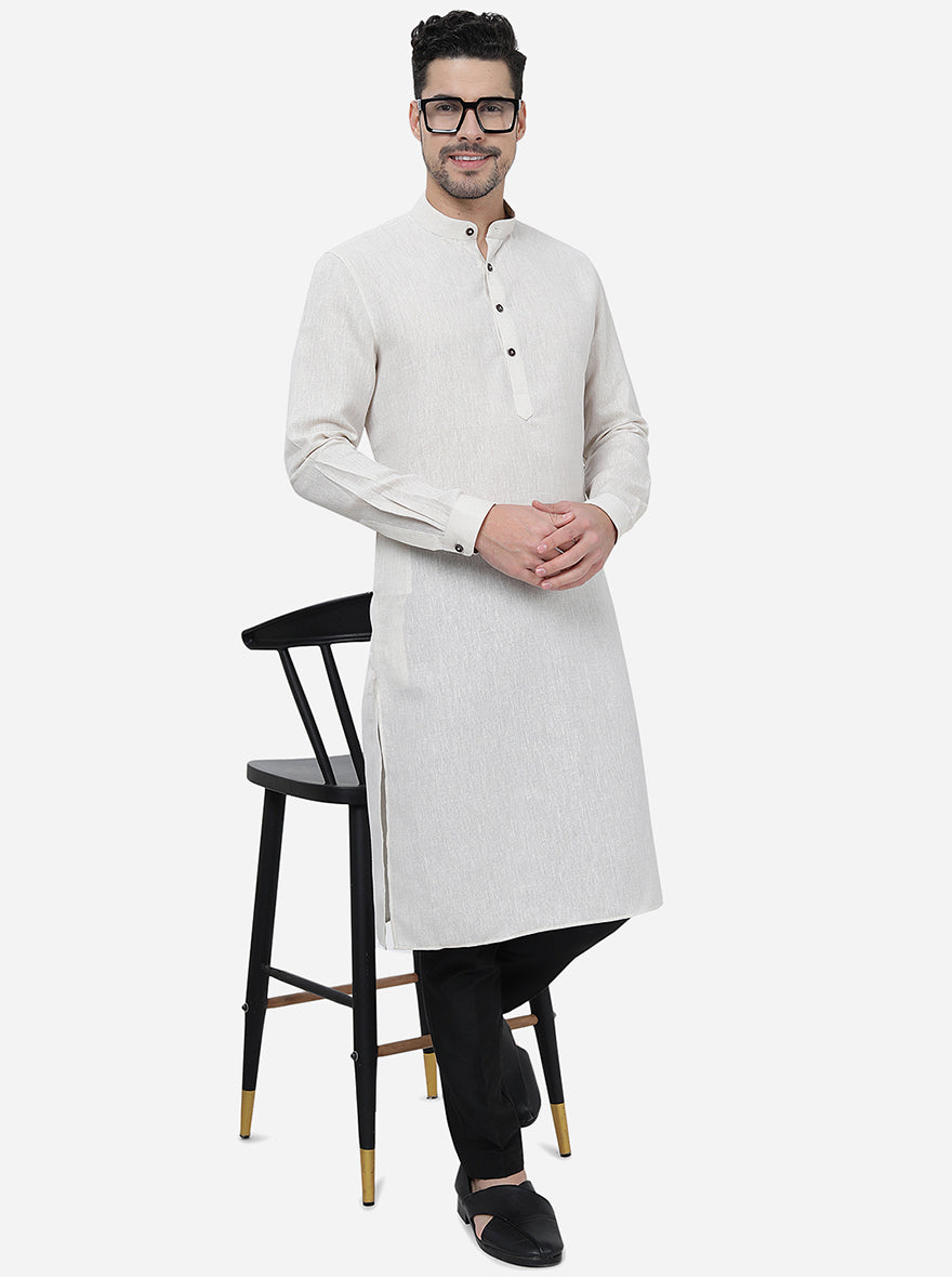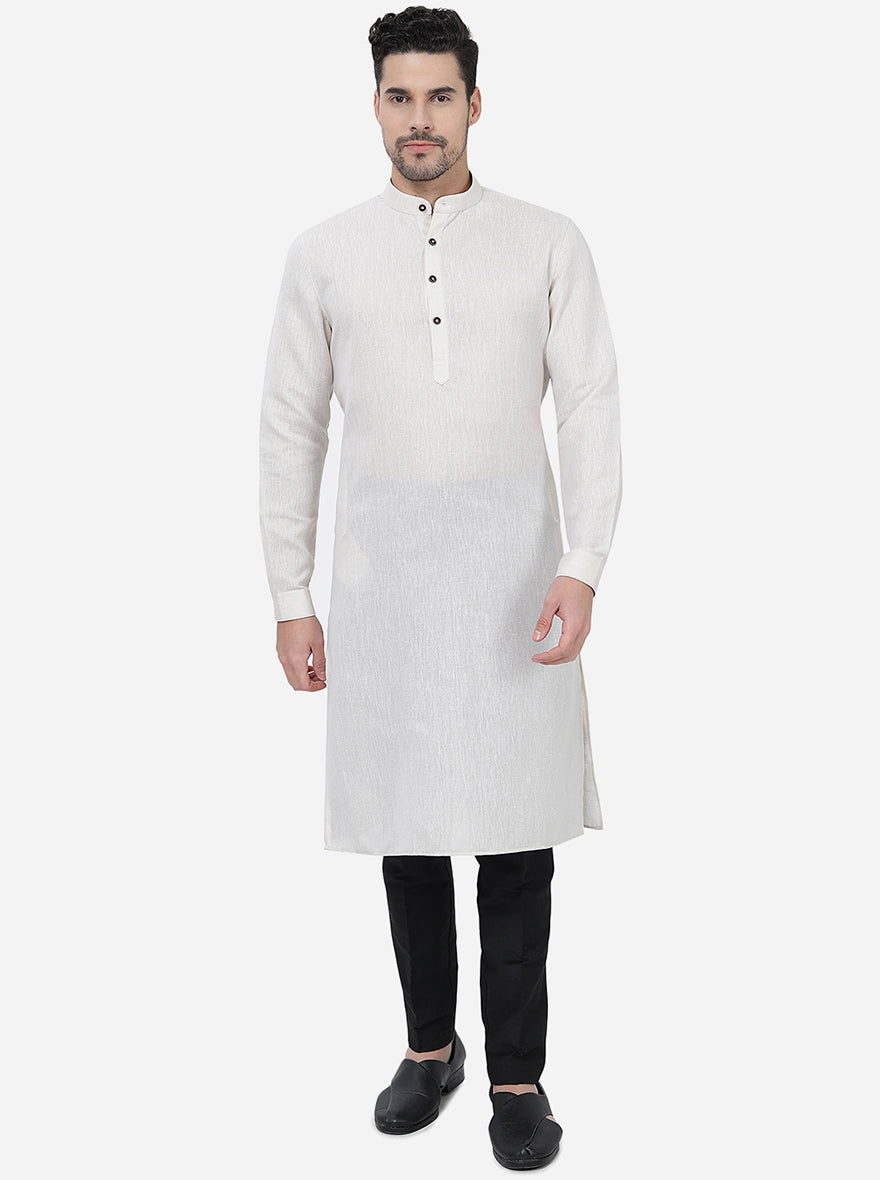 Off White Solid Regular Fit Modi Kurta | JadeBlue