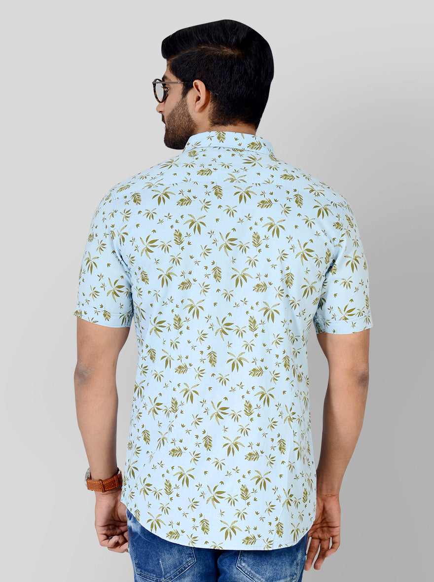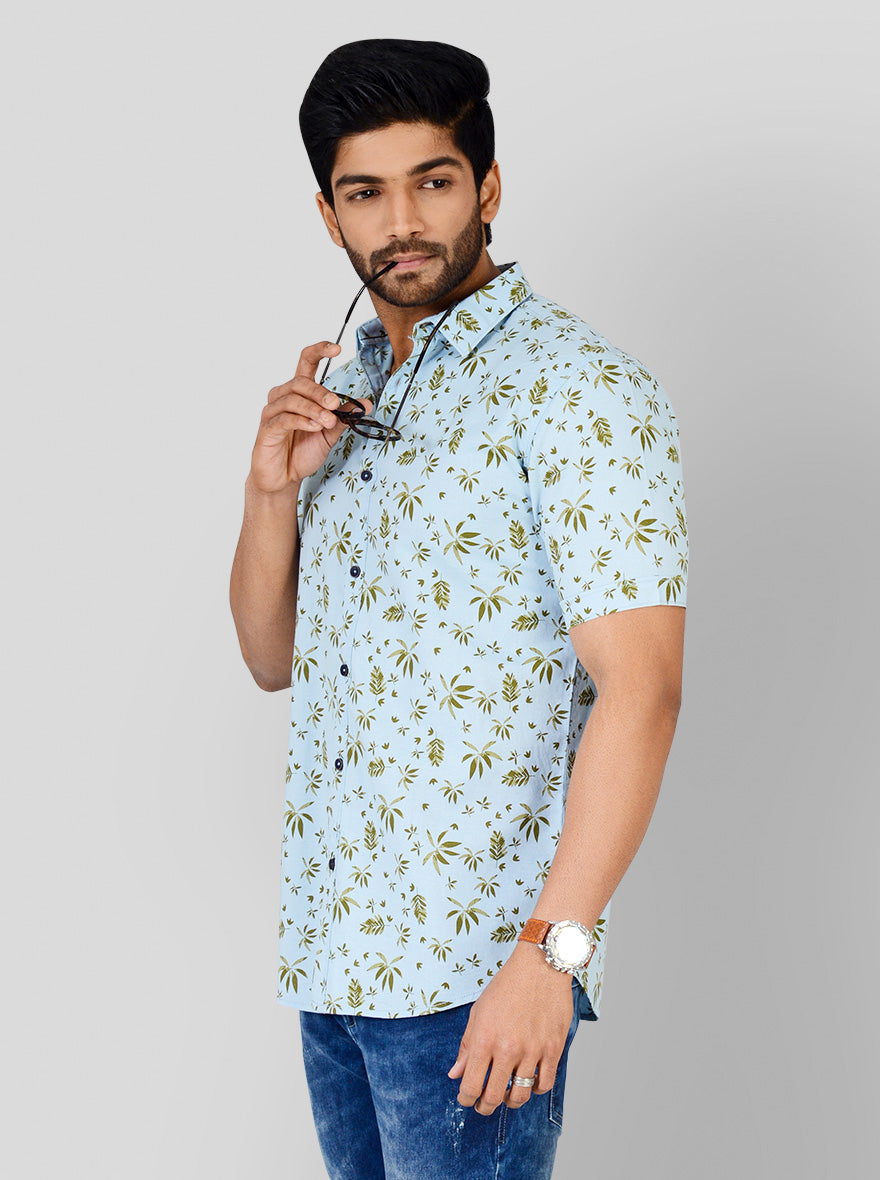 Aqua Blue Printed Slim Fit Casual Shirt | JadeBlue