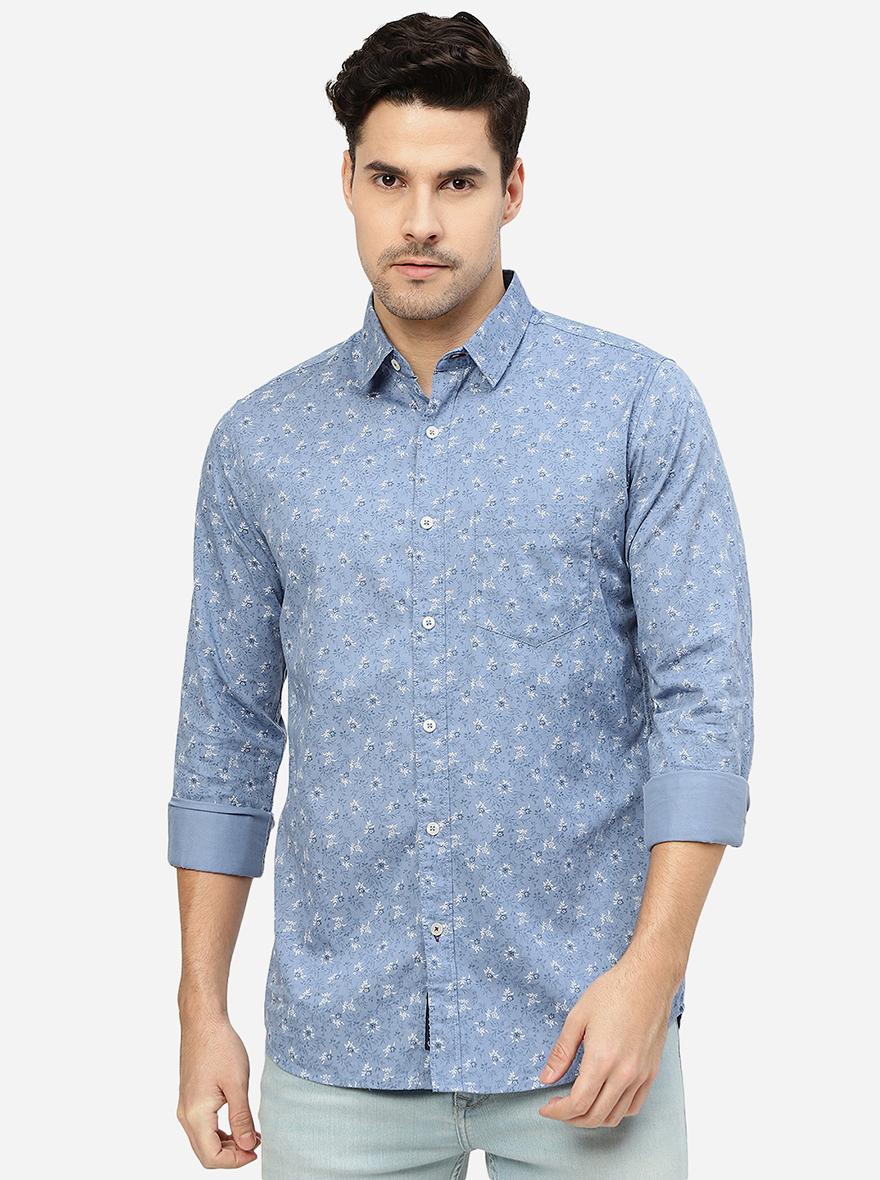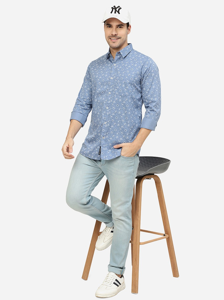 Aqua Printed Slim Fit Casual Shirt | JadeBlue