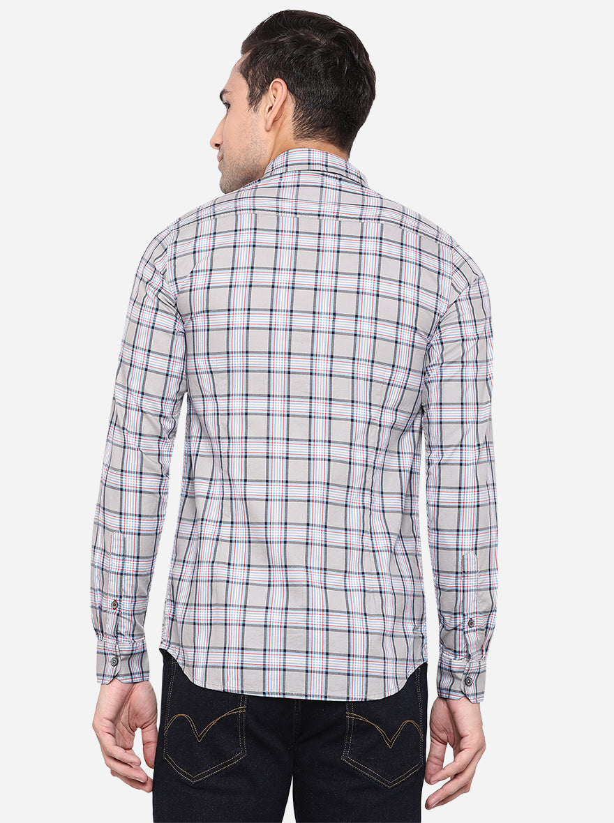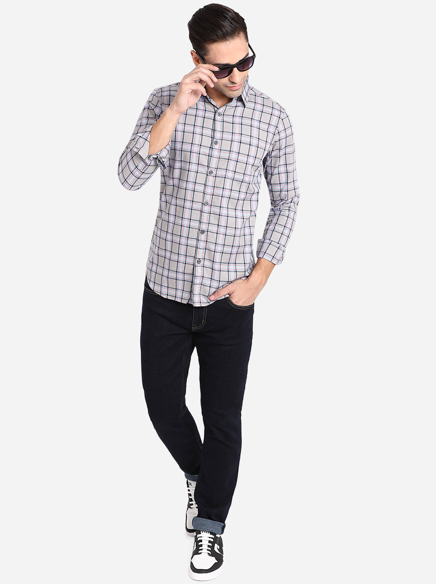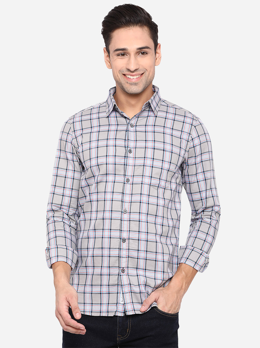 Details: Allow yourself a fashionable look wearing this Ash Grey Shirt from the latest collection of JadeBlue Sport. It features a shirt collar, full-sleeves and offers a slim-fit. It is adorned with a checked pattern, making up for a classy choice. Perfect for semi-casual wear or weekend wear. Crafted with pure cotton, it promises a soft touch against the skin and a comfort like no other. Team it with a well-fitted blue denim and smart sneakers to create a stylish attire.