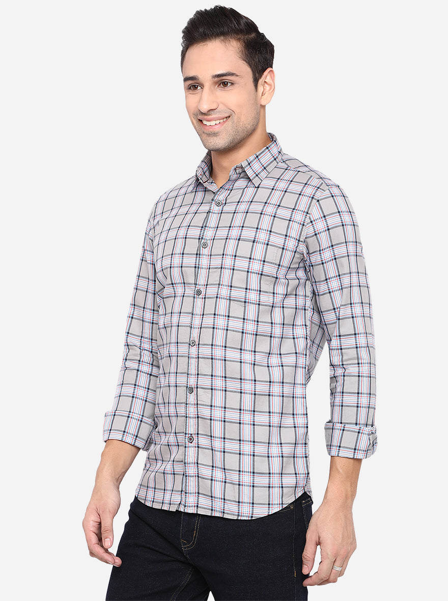 Ash Grey Checked Slim Fit Semi Casual Shirt | JadeBlue