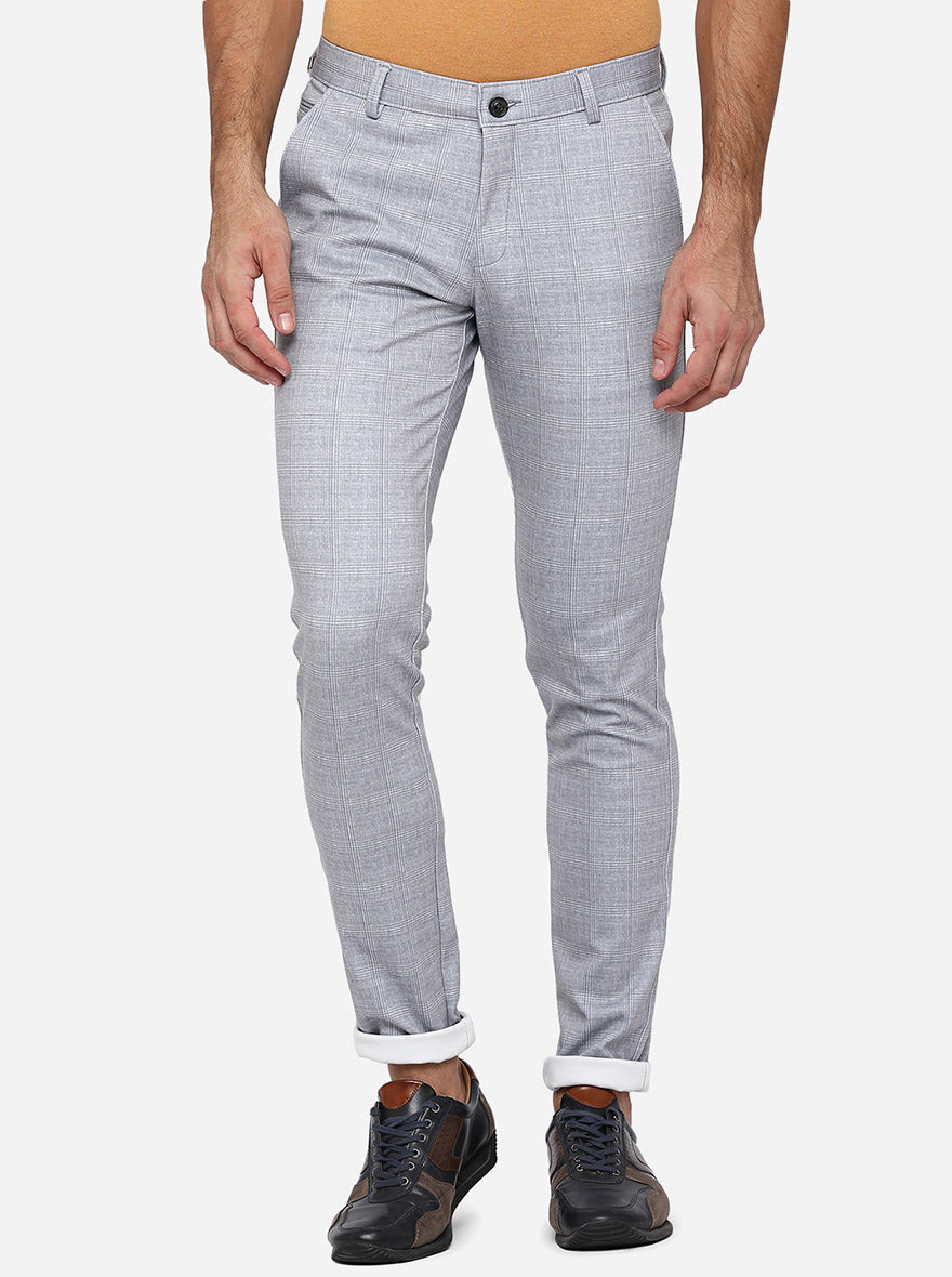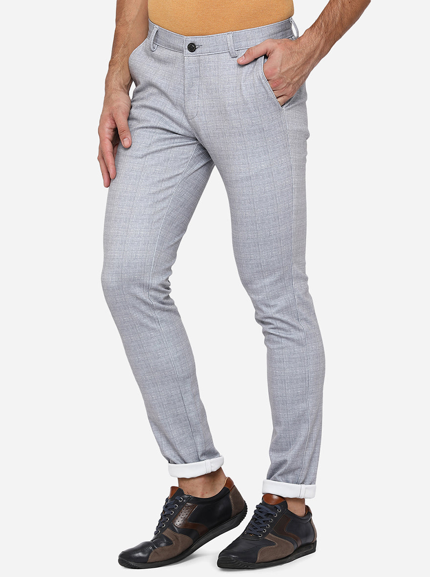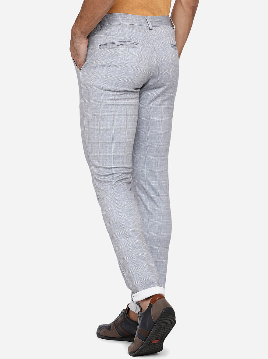 Ash Grey Checked Venice Fit Casual Trouser | JadeBlue