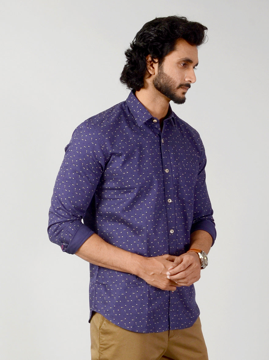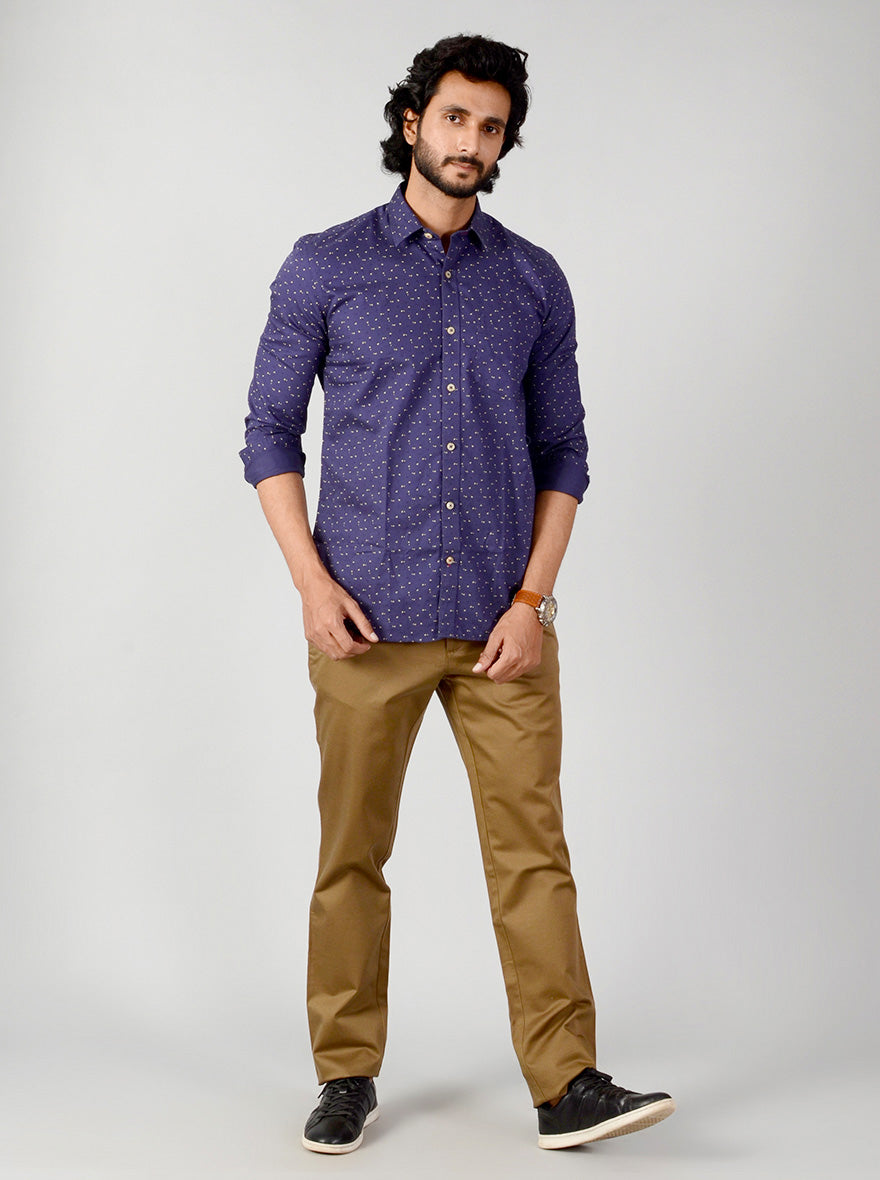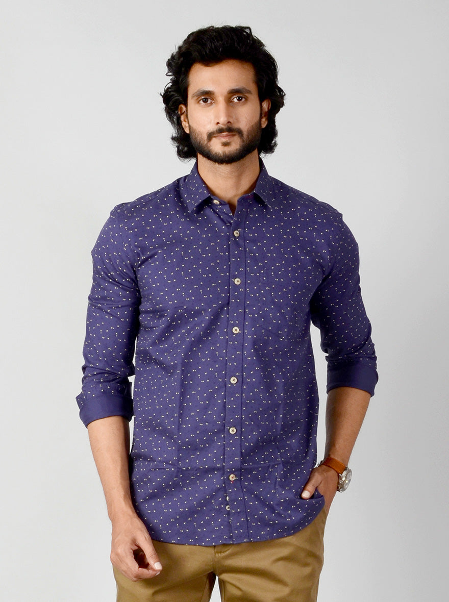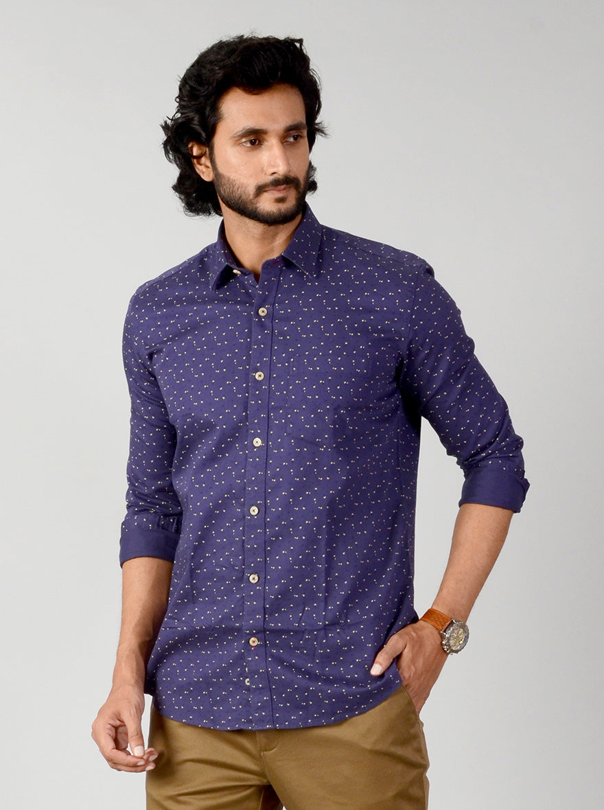 Details: Make some space for printed shirts in your casual wear collection by opting for this navy blue printed shirt. This cotton casual shirt is tailored with features such as chest pocket, shirt collar and front buttons for comfy closure.