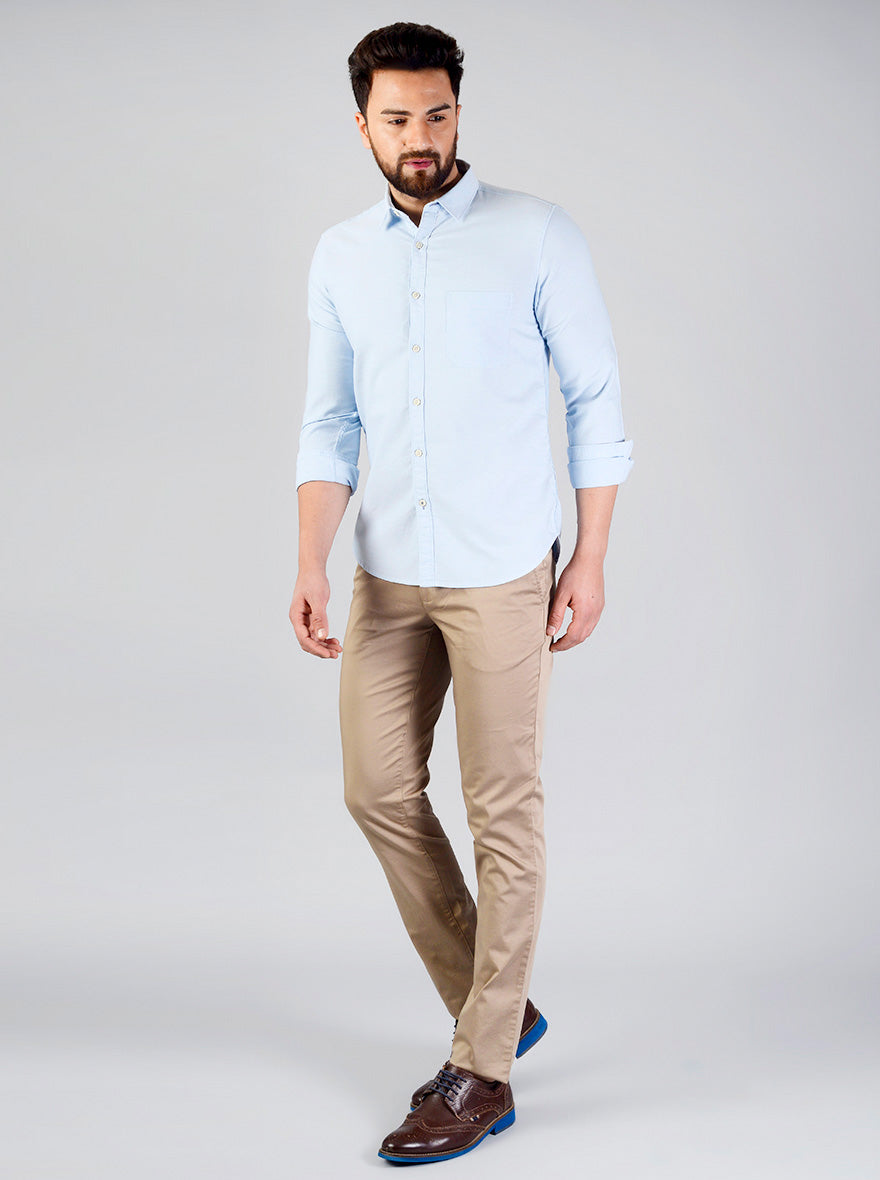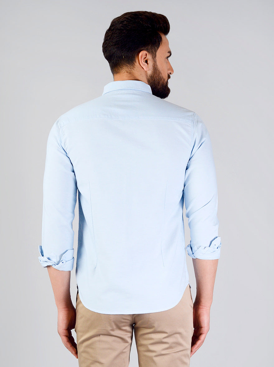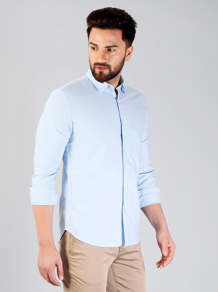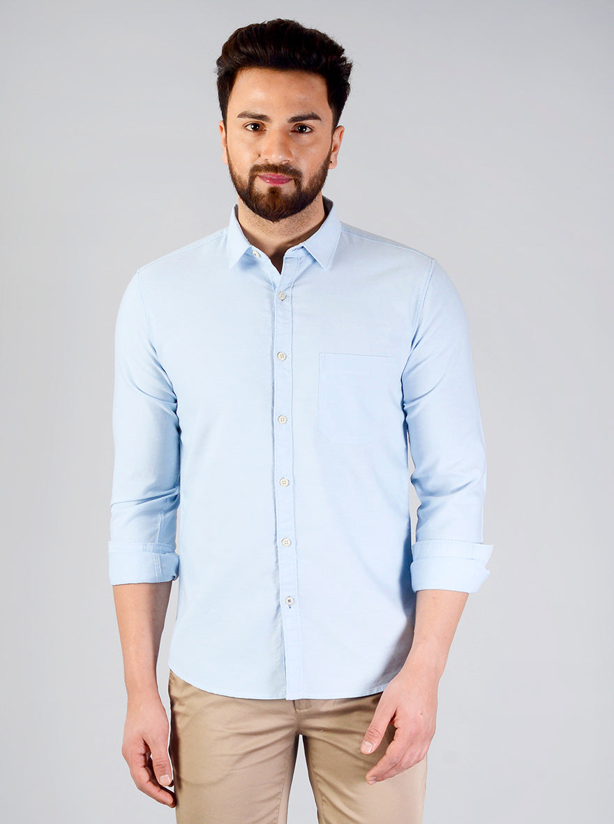 Baby Blue Solid Slim Fit Casual Shirt | Greenfibre