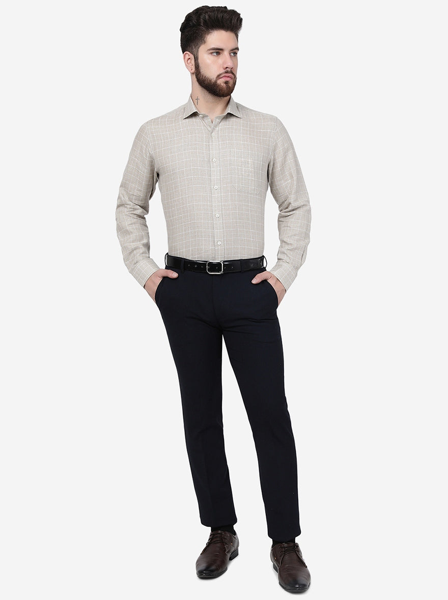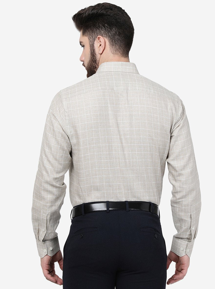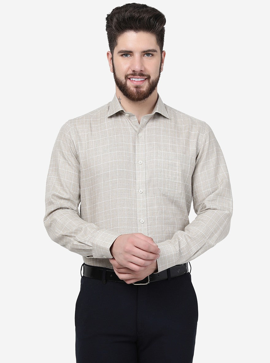 Beige Checked Regular Fit Formal Shirt | JadeBlue