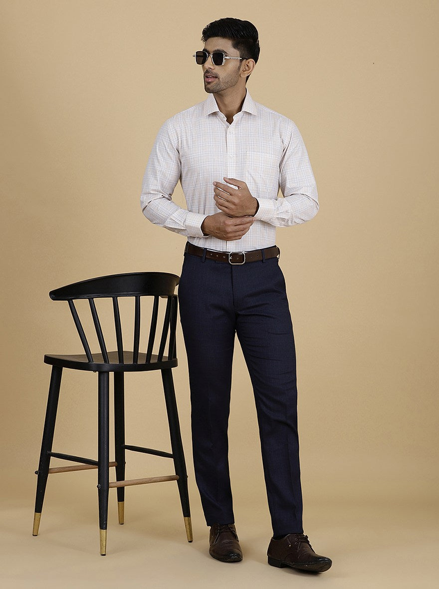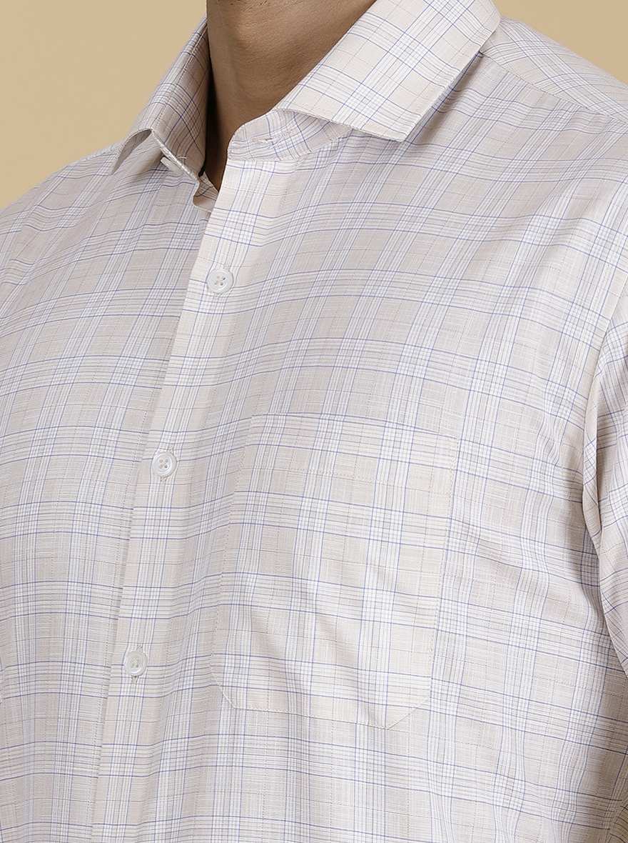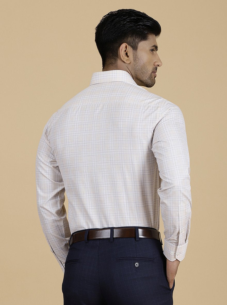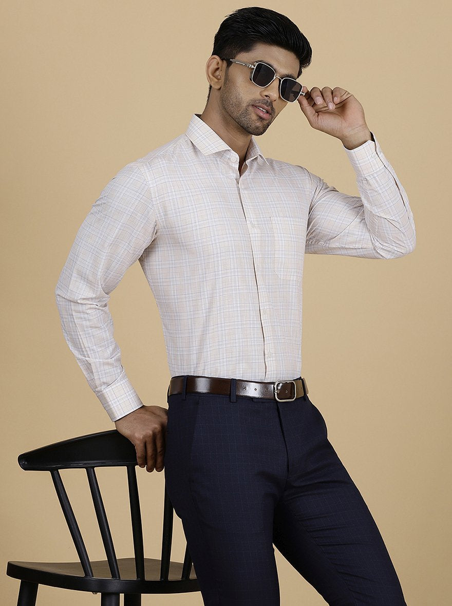 Beige Checked Slim Fit Formal Shirt | Greenfibre