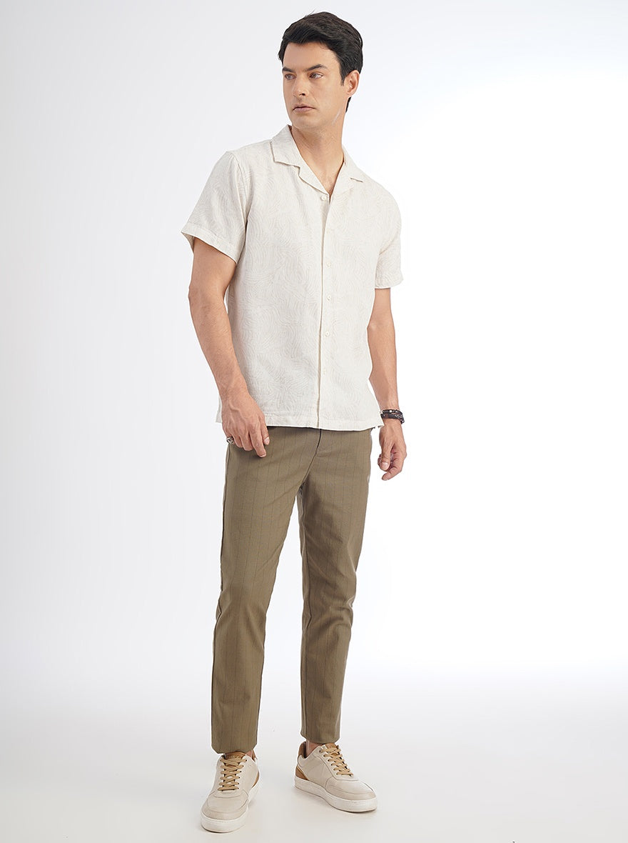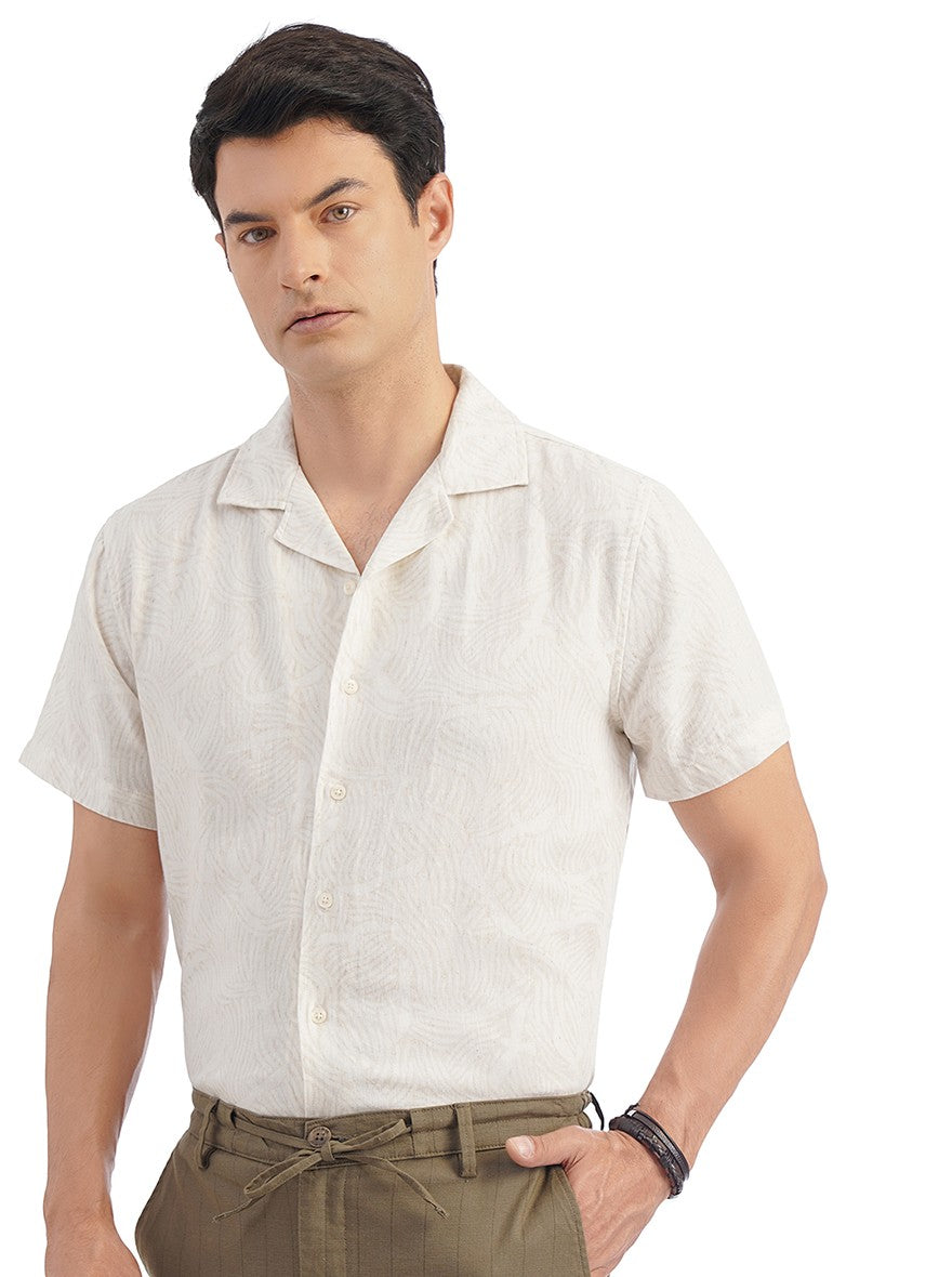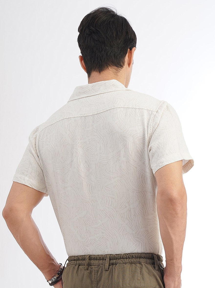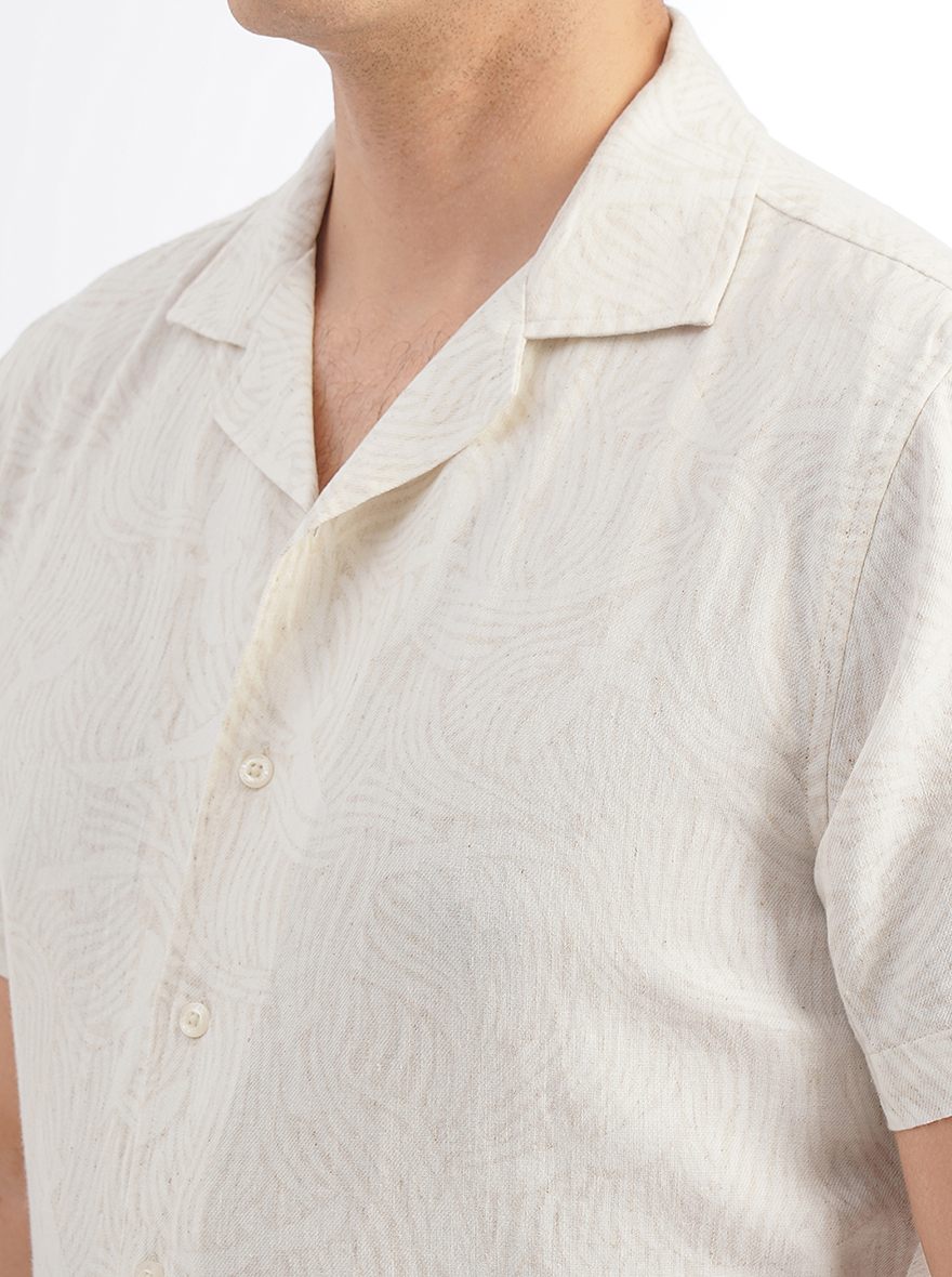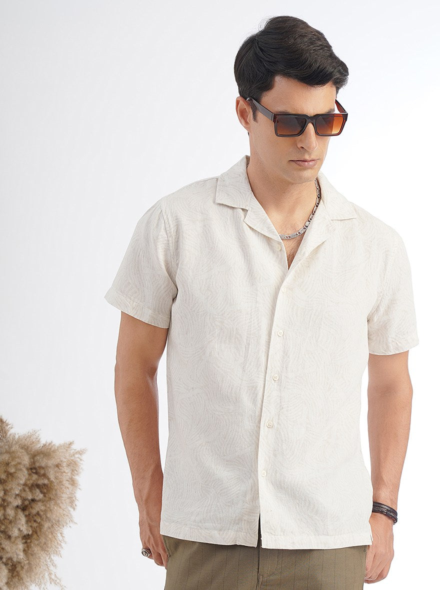 Beige Printed Slim Fit Casual Shirt | JadeBlue