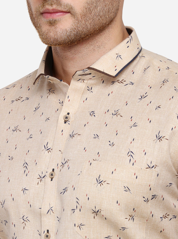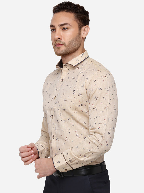 Beige Printed Slim Fit Party Wear Shirt | Greenfibre