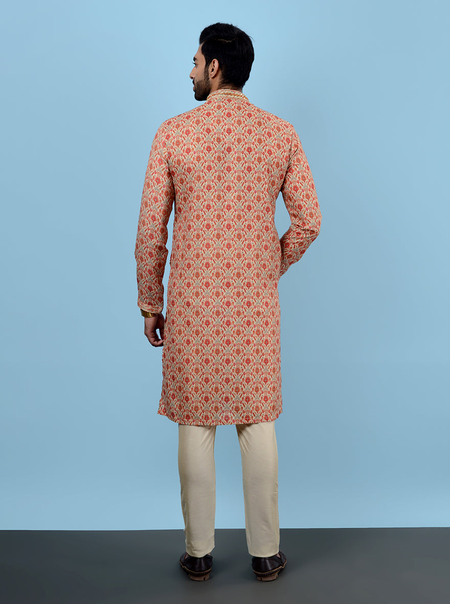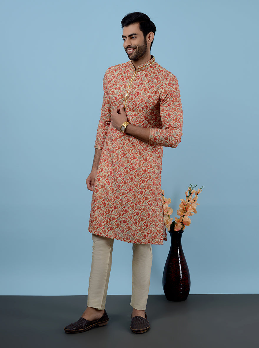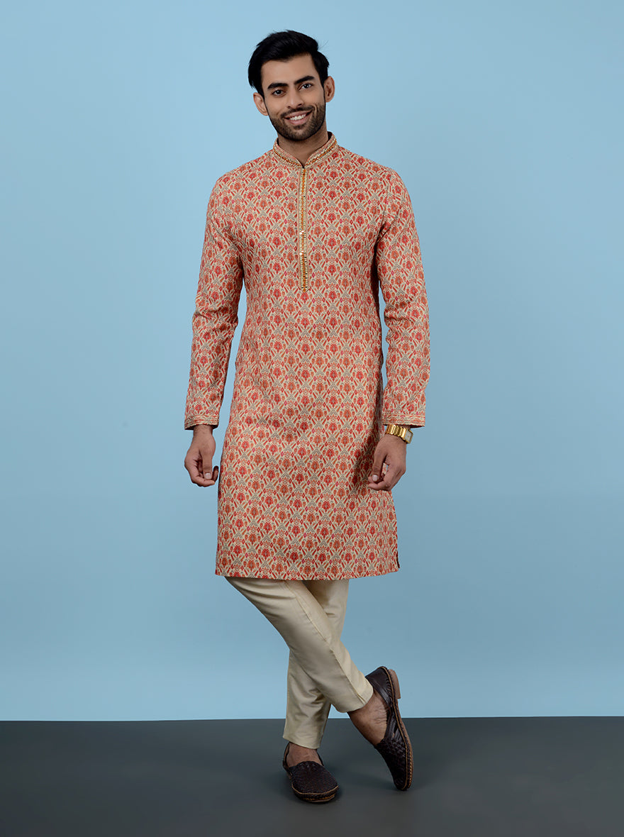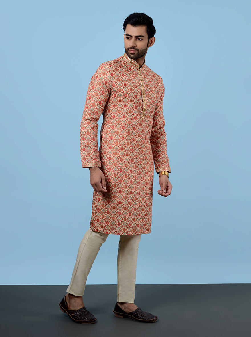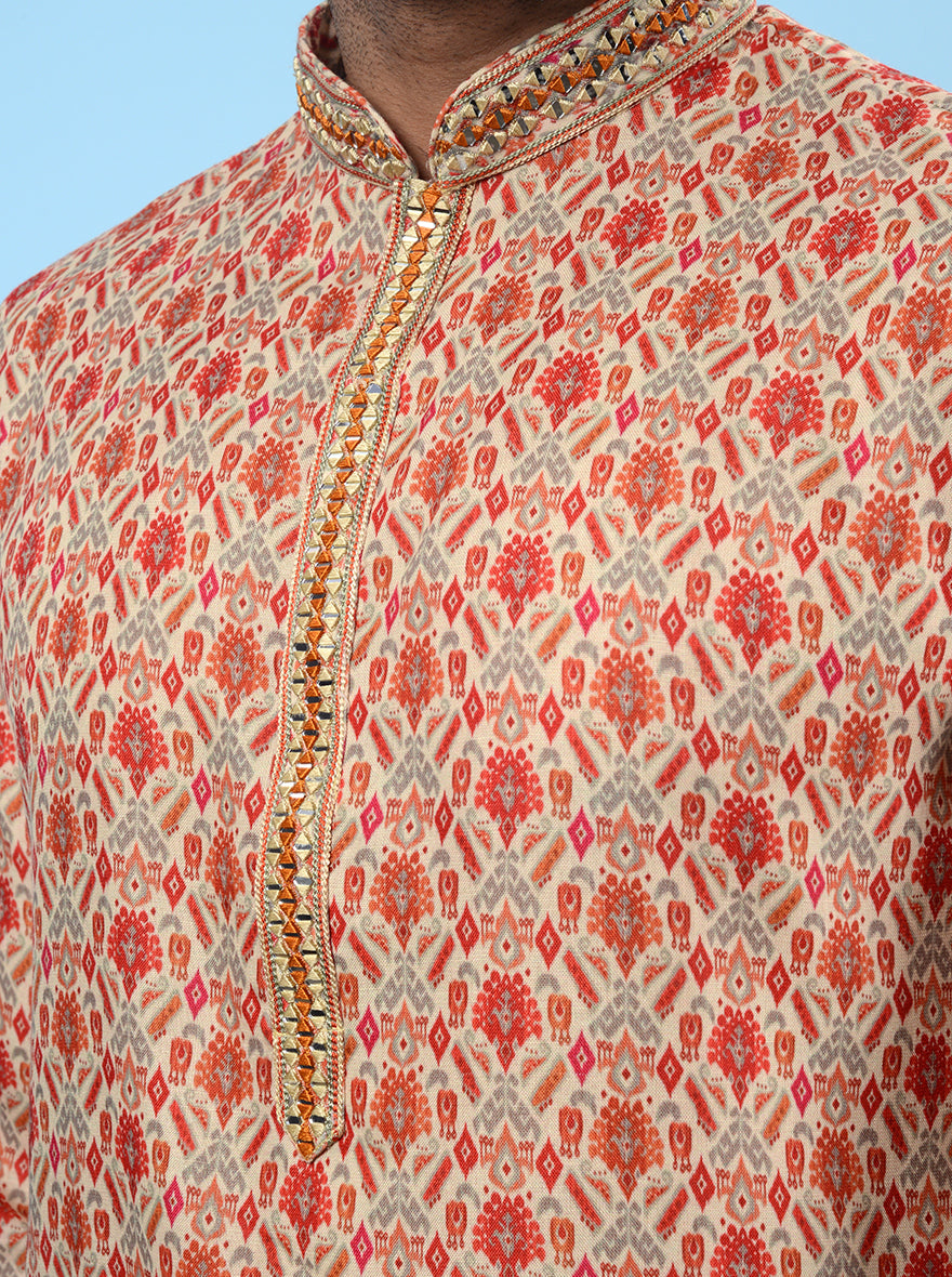 Beige & Red Kurta Pajama | Azania
