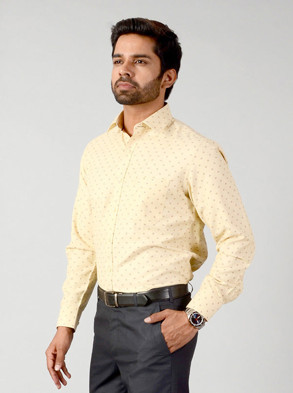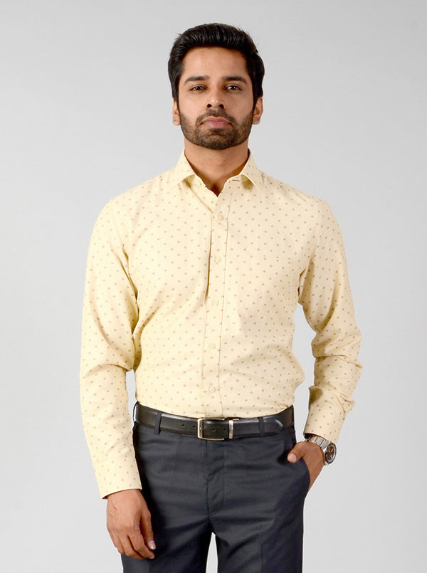 Details: In order to achieve year-round comfort and style, you can opt for this printed beige formal shirt. Made from poly cotton fabric, this slim fit shirt features chest pocket, standard collar and front buttons for fastening.