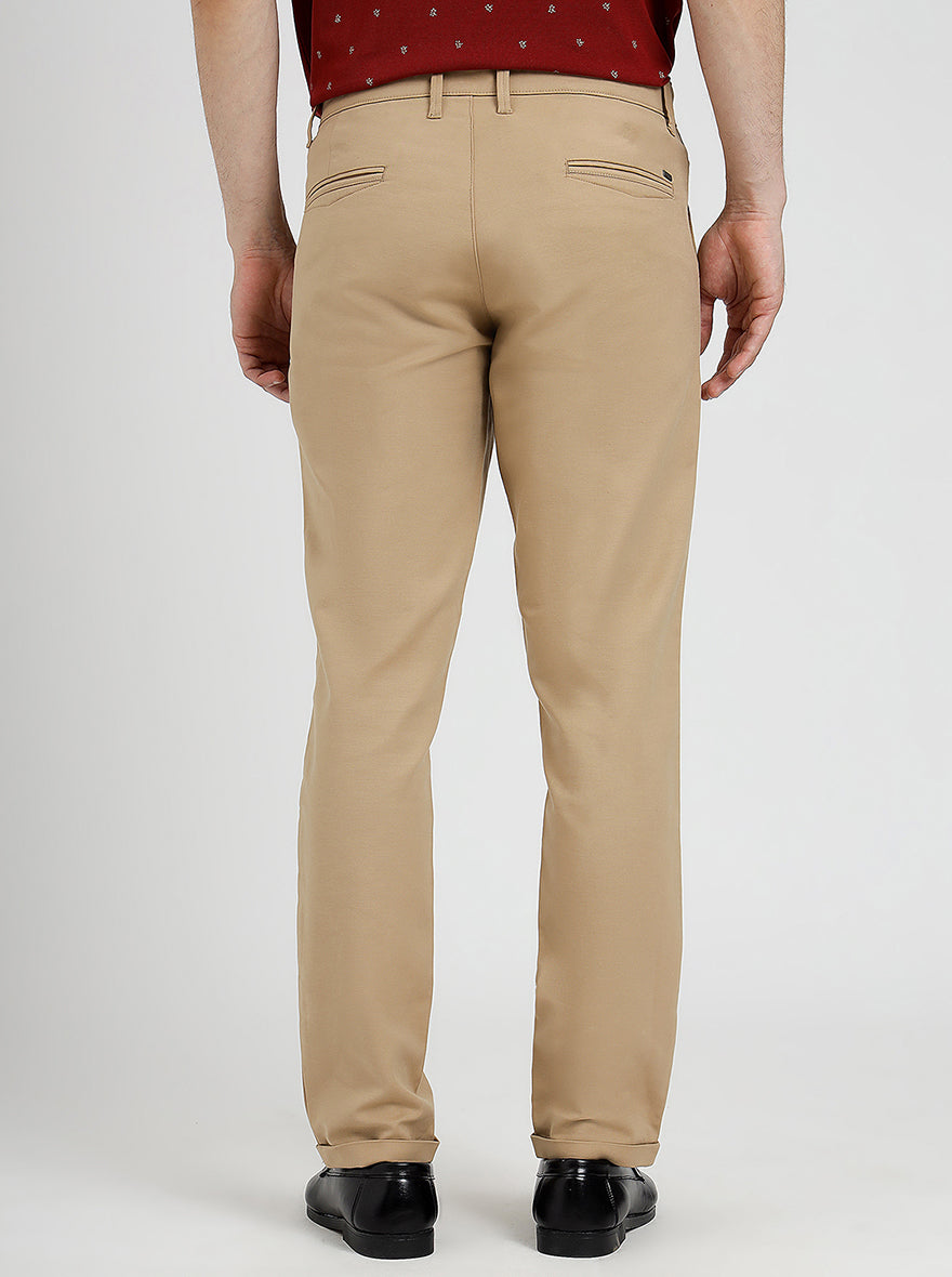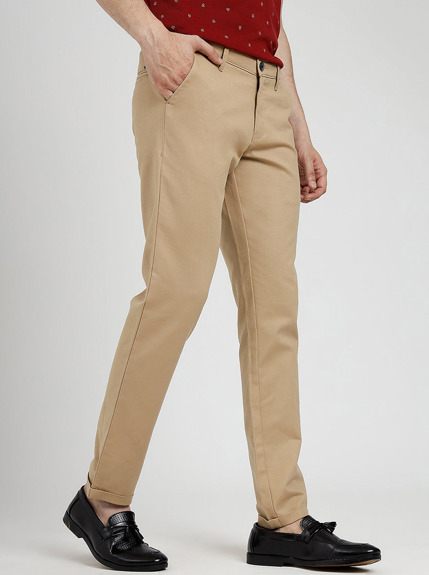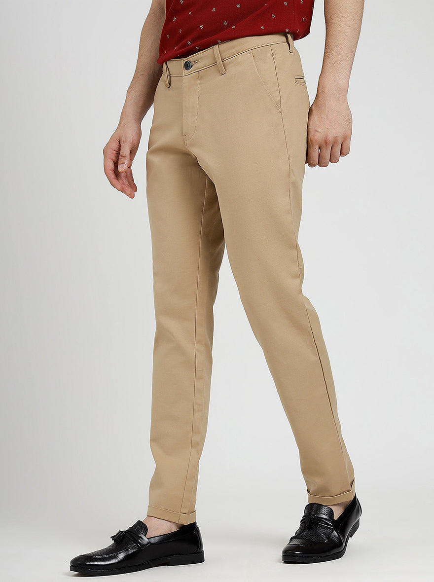 Beige Solid Neo Fit Casual Trouser | Greenfibre