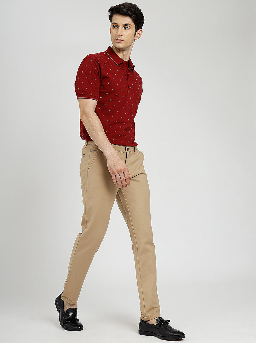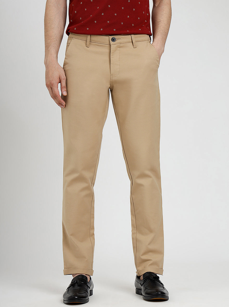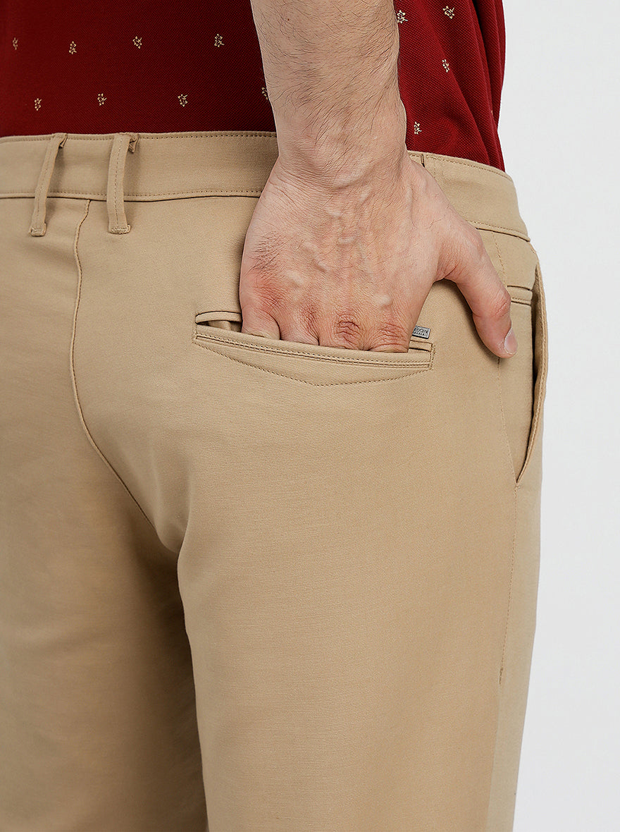Beige Solid Neo Fit Casual Trouser | Greenfibre