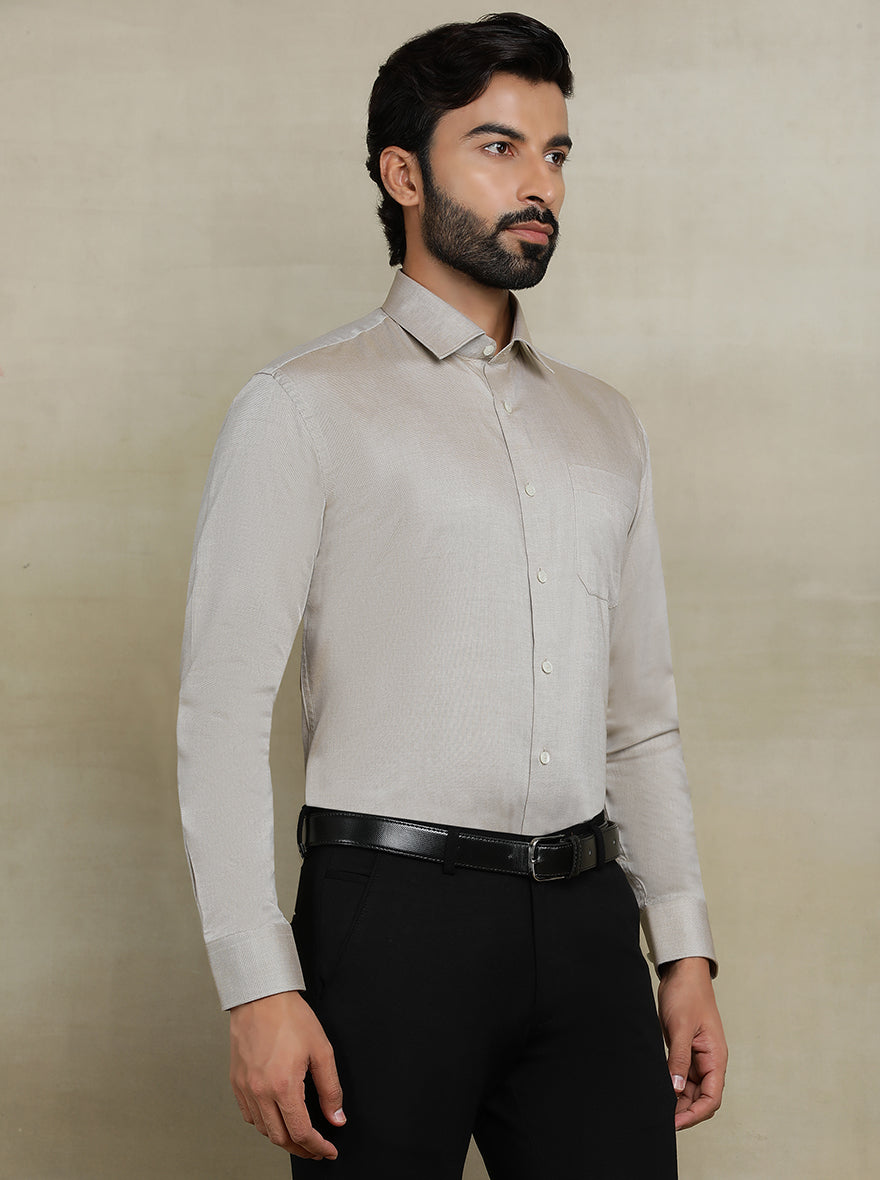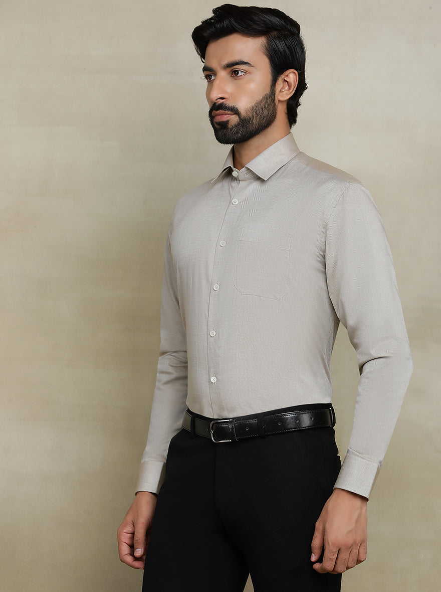 Beige Solid Regular Fit Formal Shirt | JadeBlue
