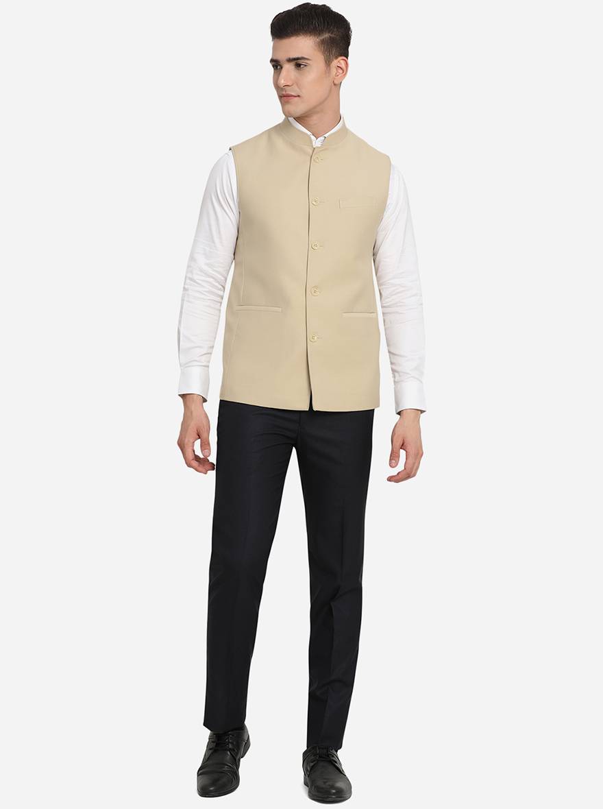 Beige Solid Regular Fit Modi Jacket | JadeBlue