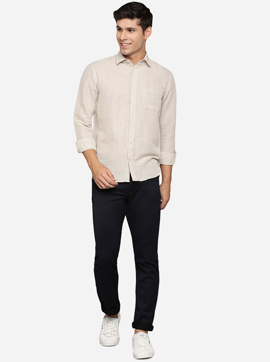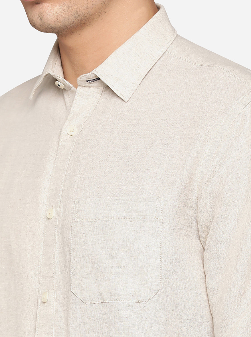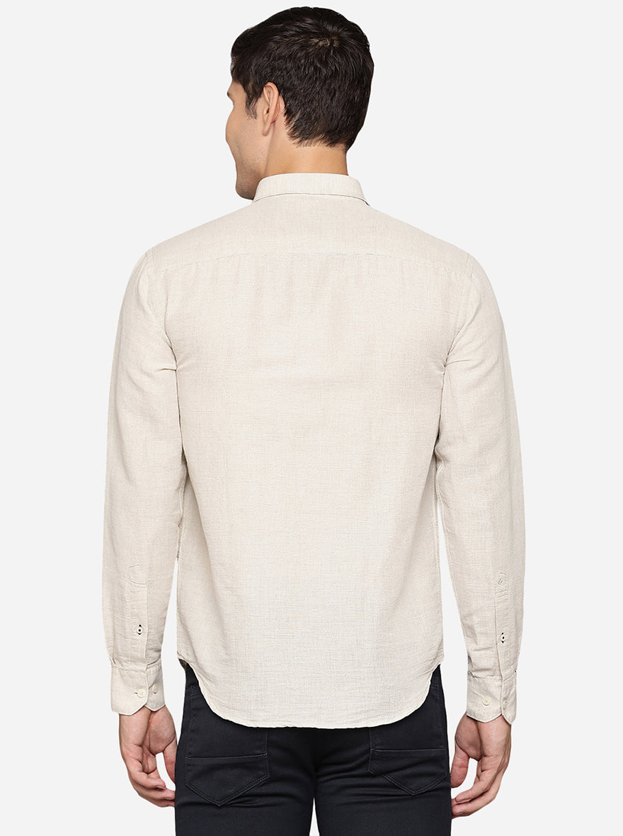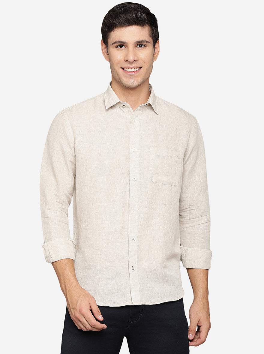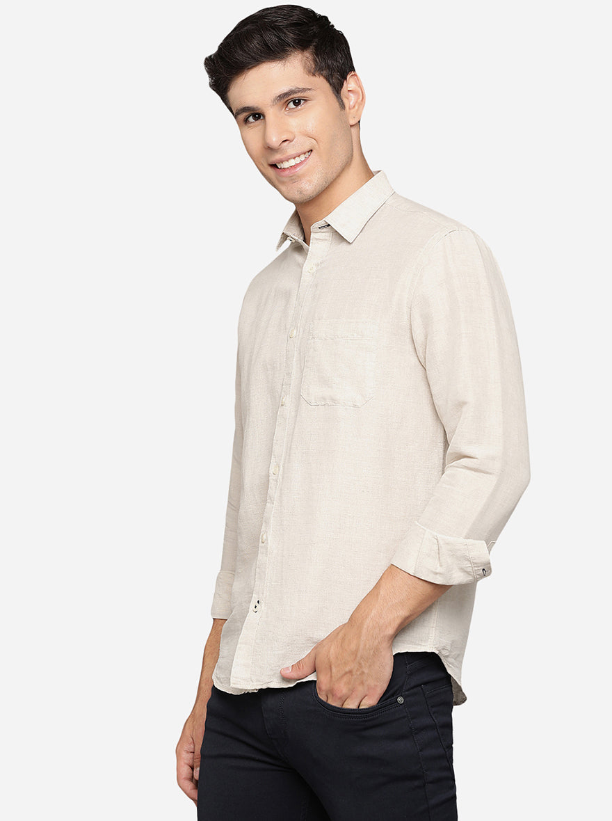 Beige Solid Slim Fit Casual Shirt | Greenfibre