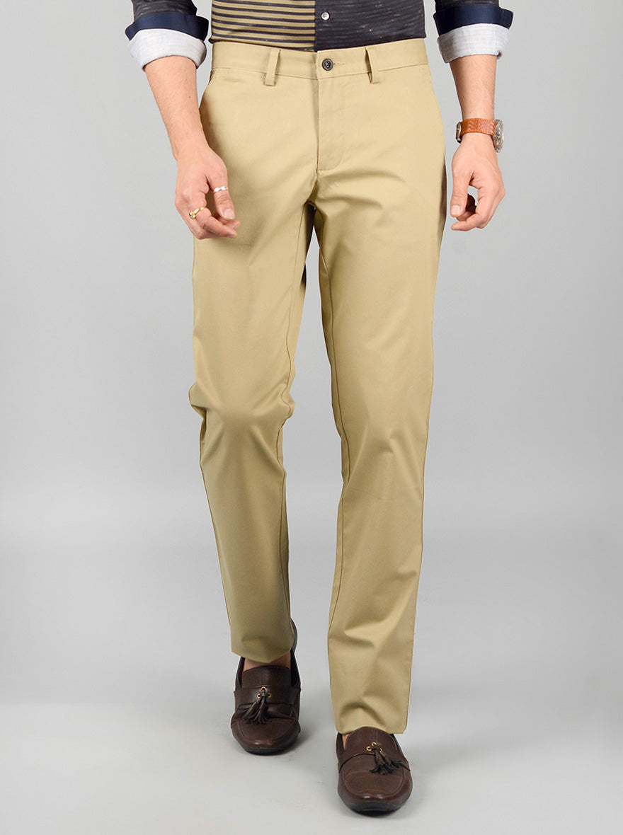 Details: This solid beige trousers by JB Sport will let you achieve a stunning yet comfy casual look. Made from cotton lycra fabric, this cool pair of casual trousers feature belt loops, single button closure, zip fly and 4 functional pockets.