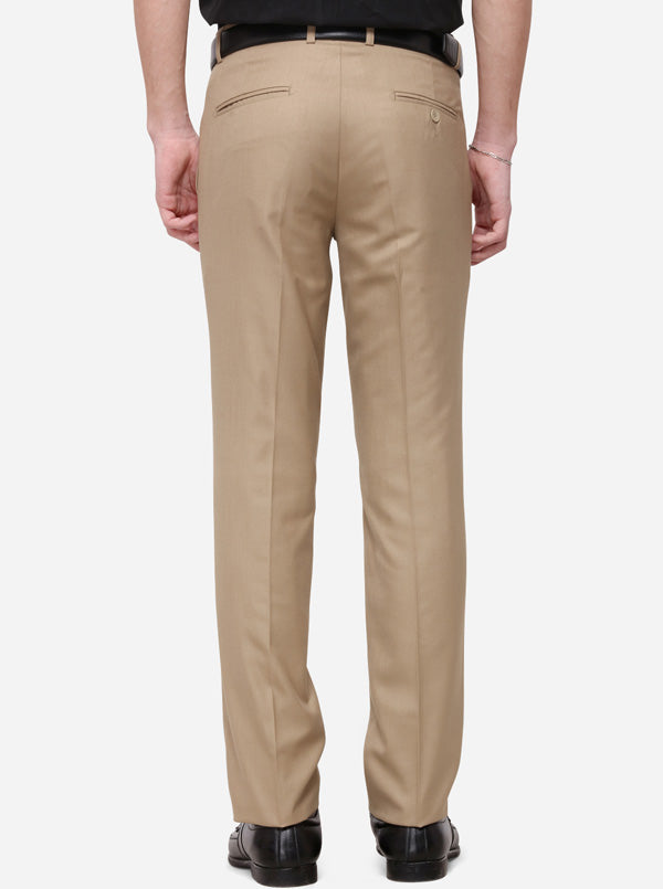 Beige Solid Slim Fit Formal Trouser | Greenfibre