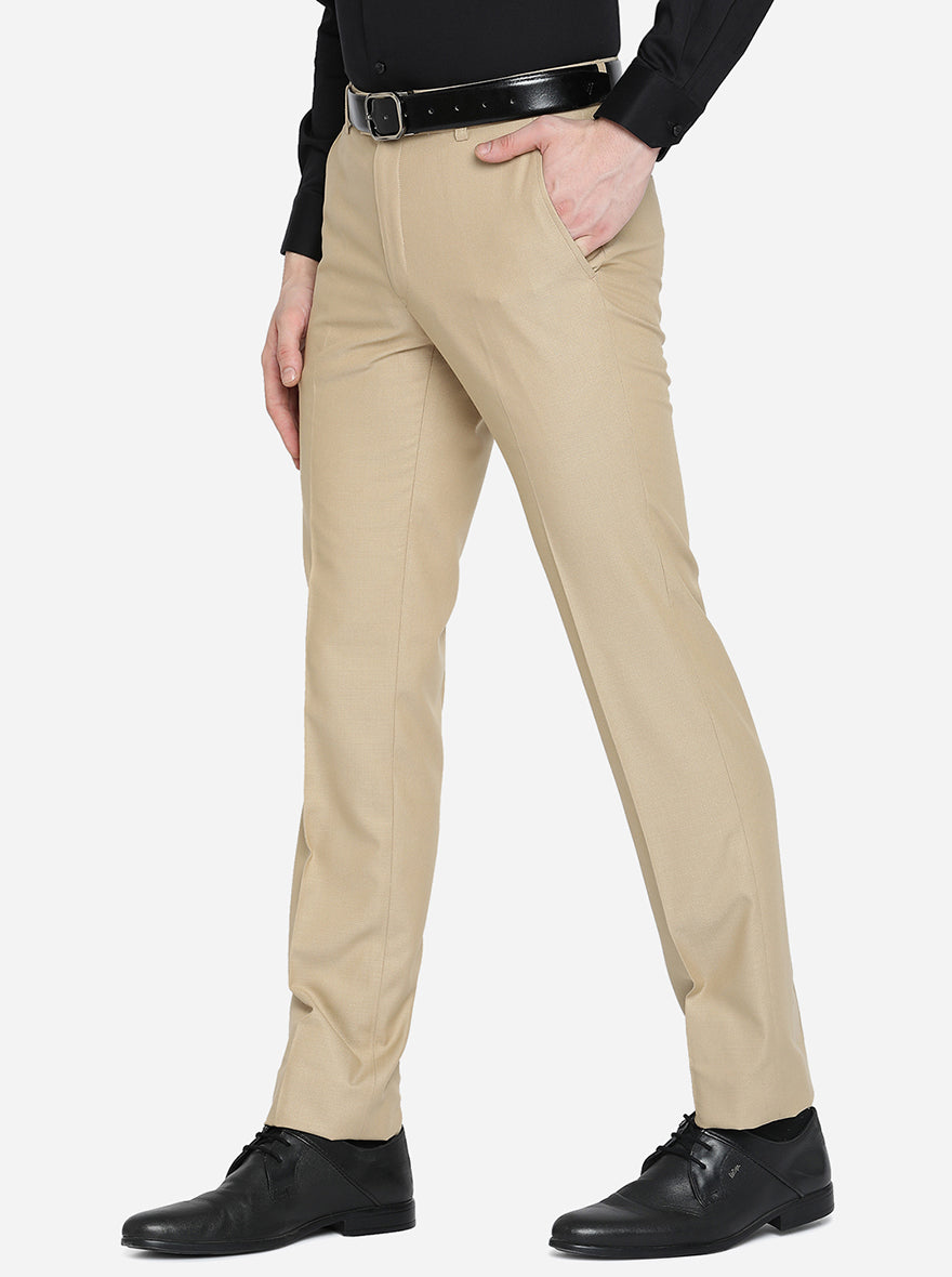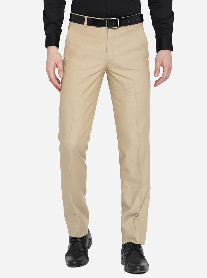 Details: Make a style statement walking in these neat and fashionable Beige Trouser from the latest collection of Metal. It features a button and a zip closure and comes with two pockets on the front and two at the back. Offers a slim-fit. Adorned with a solid pattern, making up for a timeless choice. Crafted with good quality Terry Rayon, it ensures you the maximum comfort and breathability for all day long. Perfect for formal wear. Match it with a smart shirt and a pair of oxford shoes to create a stylish look.