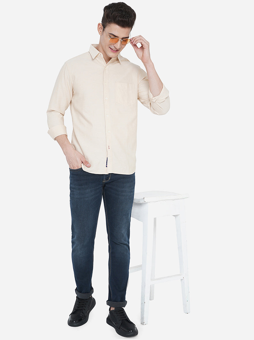 Beige Solid Slim Fit Semi Casual Shirt | Greenfibre