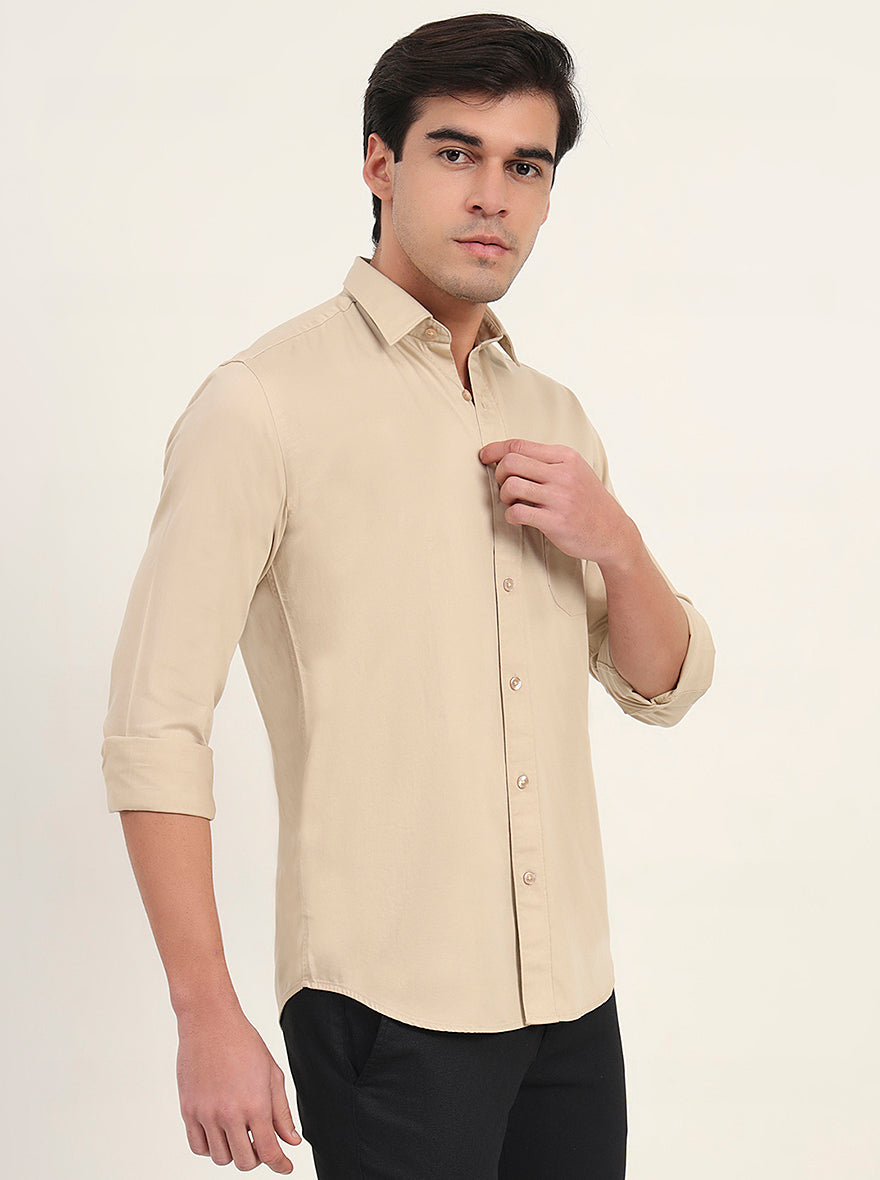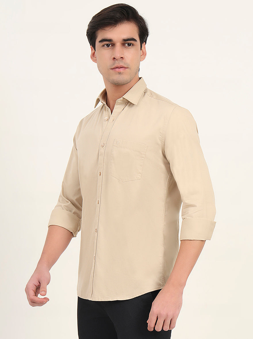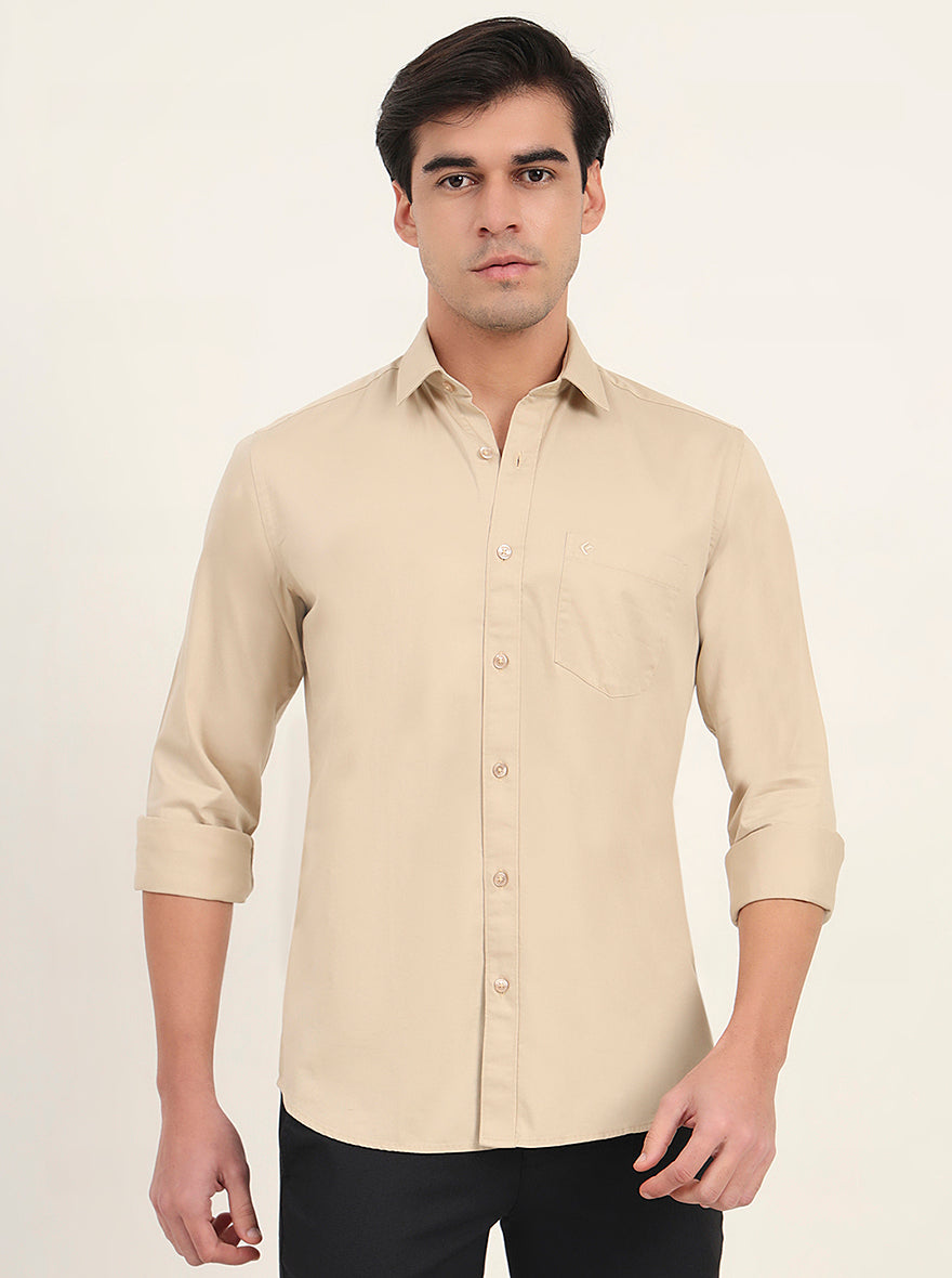 Beige Solid Slim Fit Semi Casual Shirt | Greenfibre