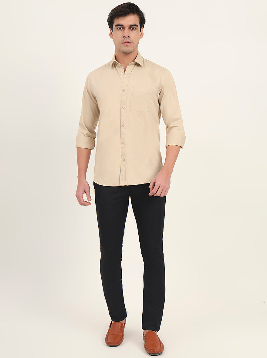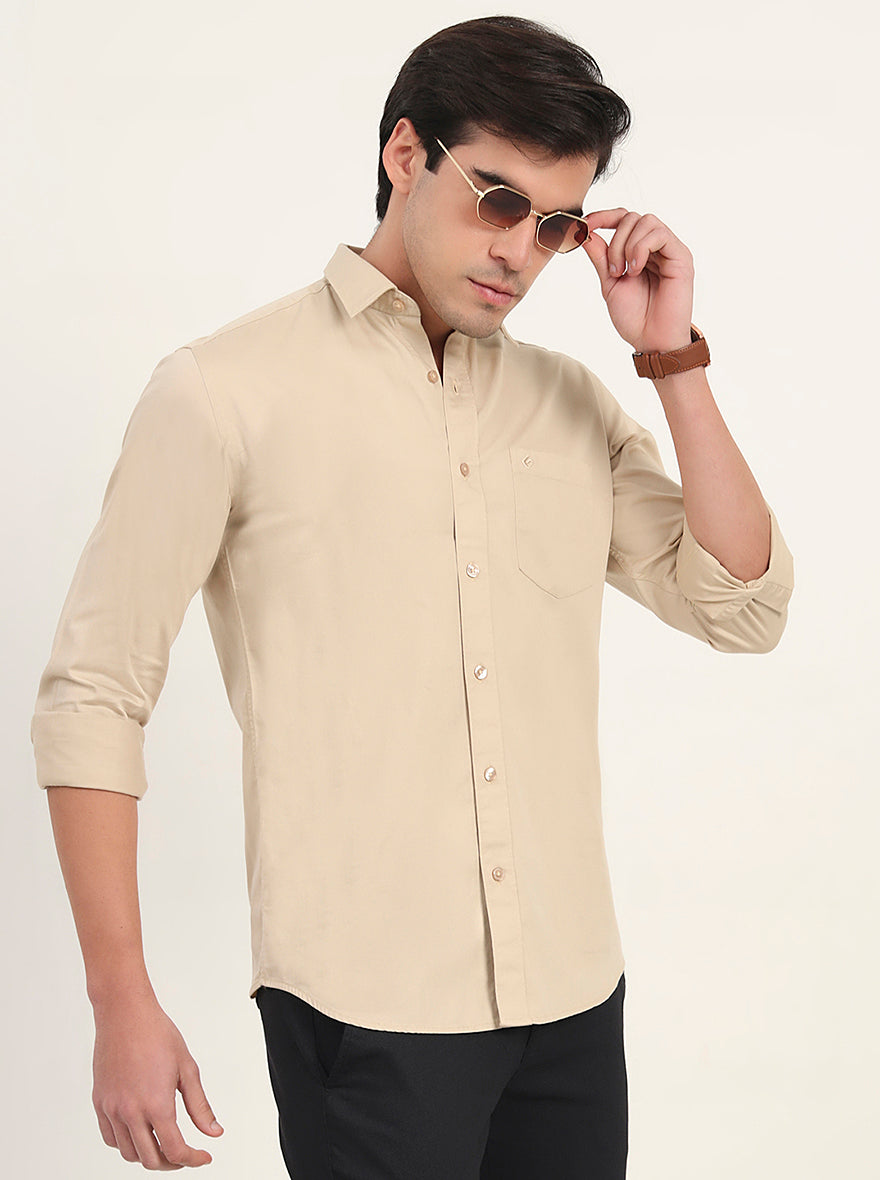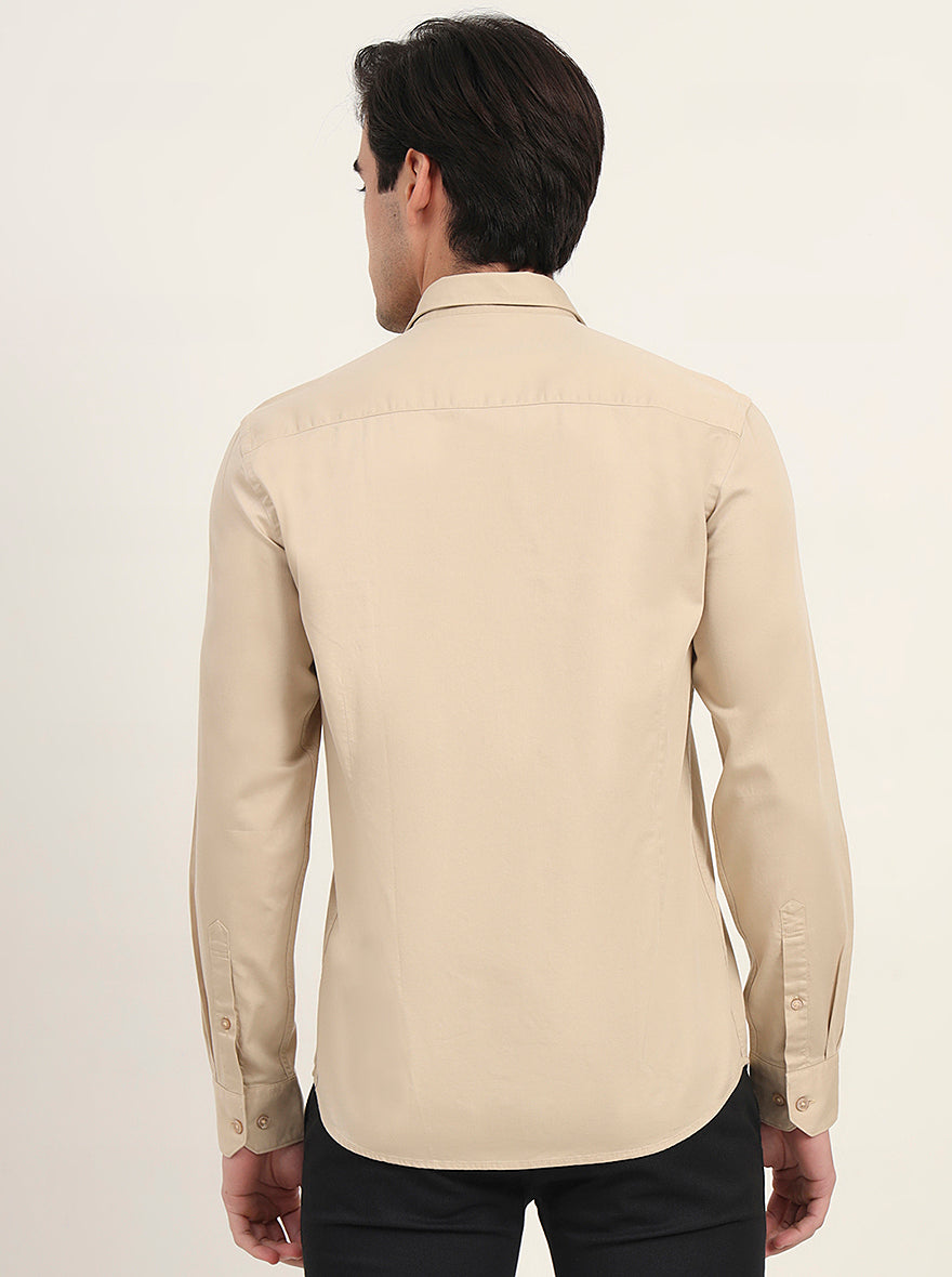 Beige Solid Slim Fit Semi Casual Shirt | Greenfibre