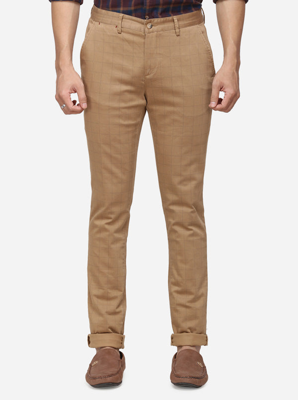 Beige Solid Super Slim Fit Casual Trouser | Greenfibre