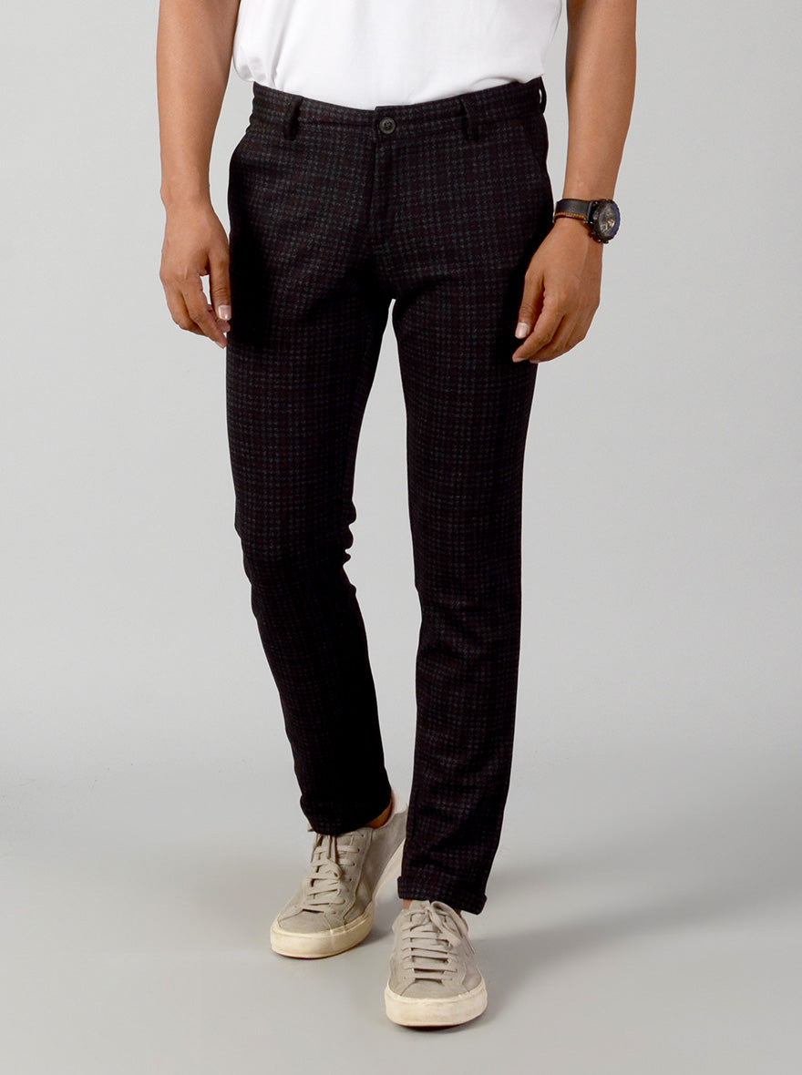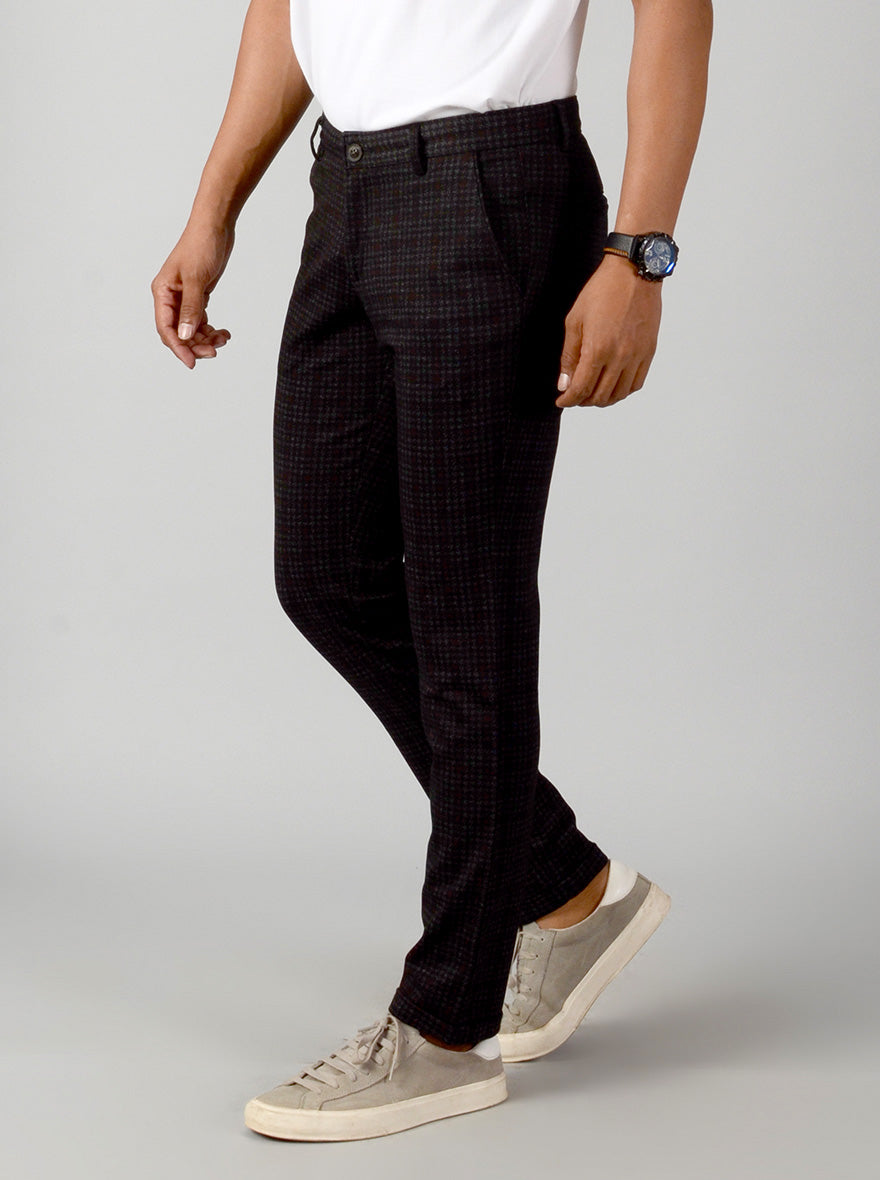 Black Checked Slim Fit Casual Trouser | JadeBlue