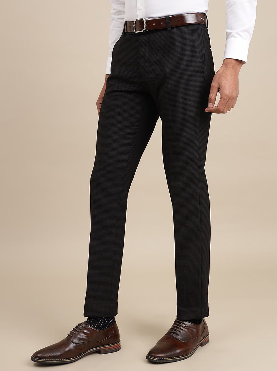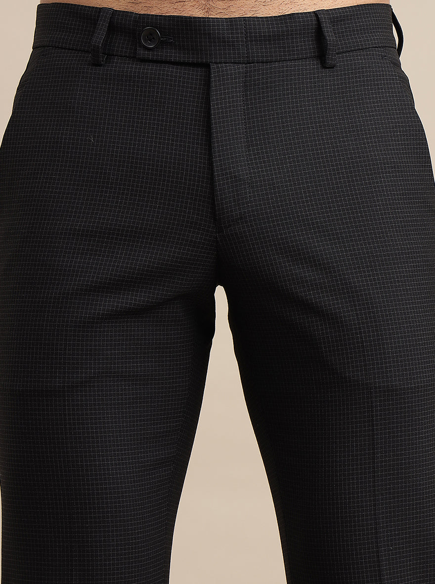 Black Checked Super Slim Fit Formal Trouser | JadeBlue