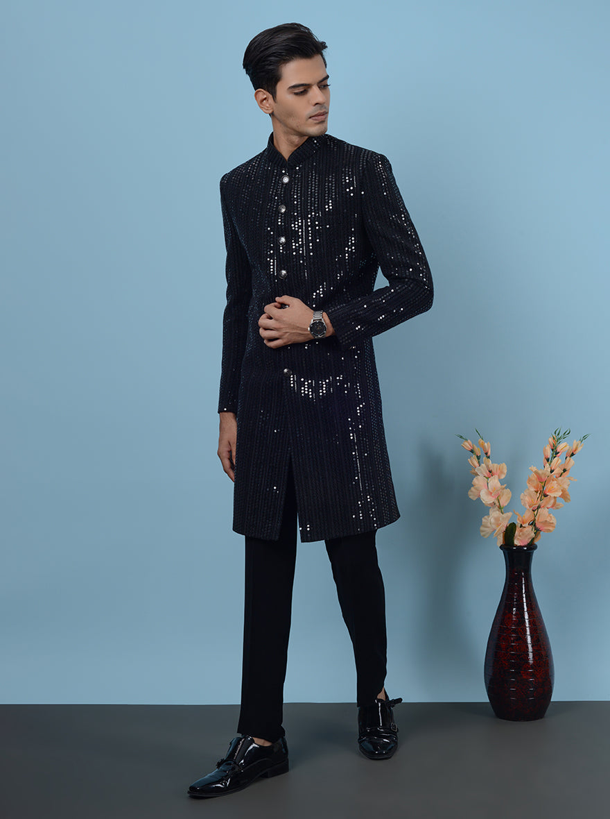 Details: Step out in style with our Azania Indowestern designed for sangeet, reception, sufi . Made from premium georgette, this regular fit fit suit features embroidery, making it perfect for any special occasion. Enhance your wardrobe with this essential piece.