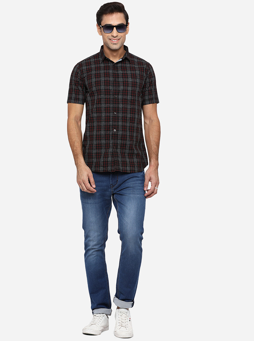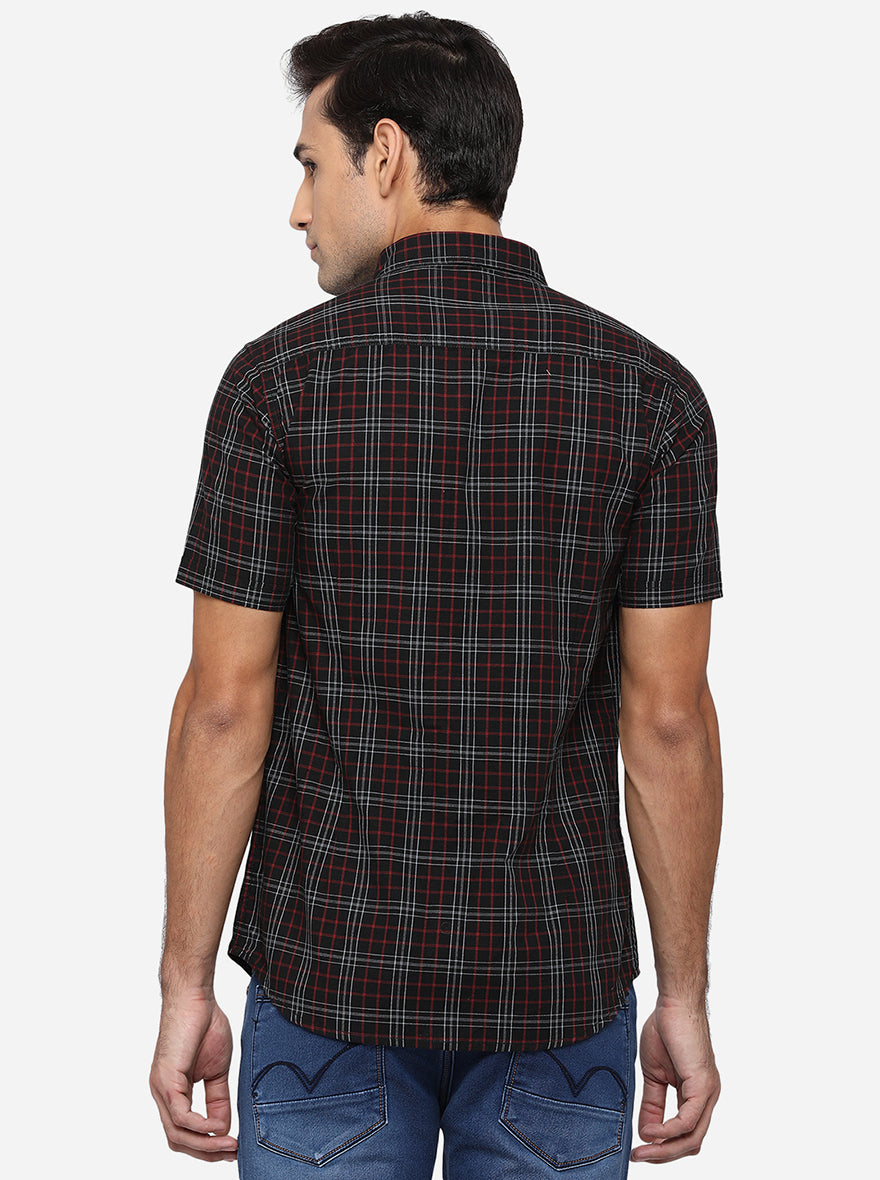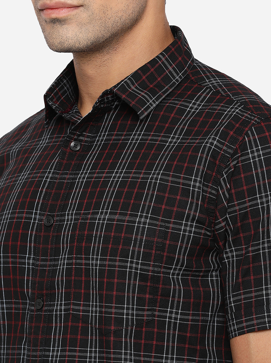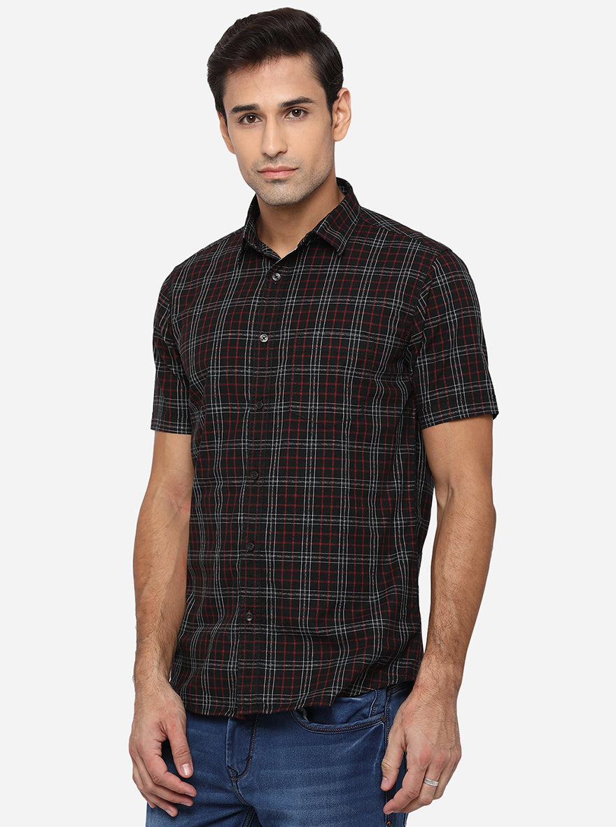 Black & Red Checked Slim Fit Semi Casual Shirt | JadeBlue