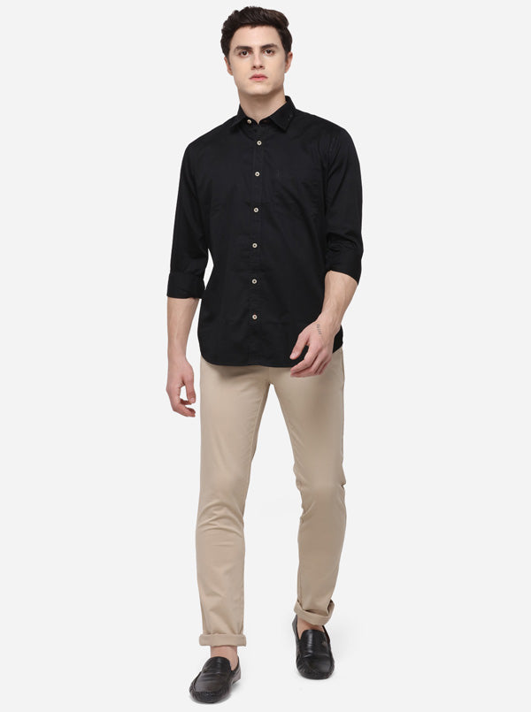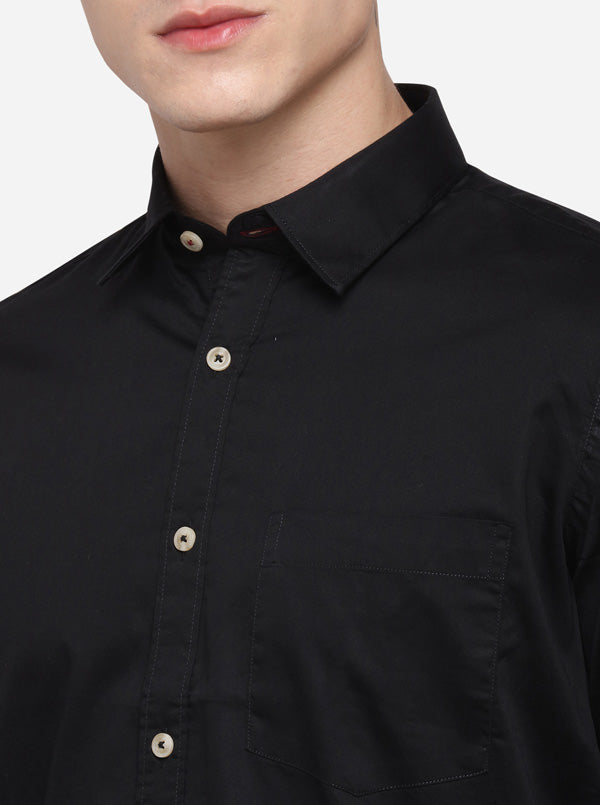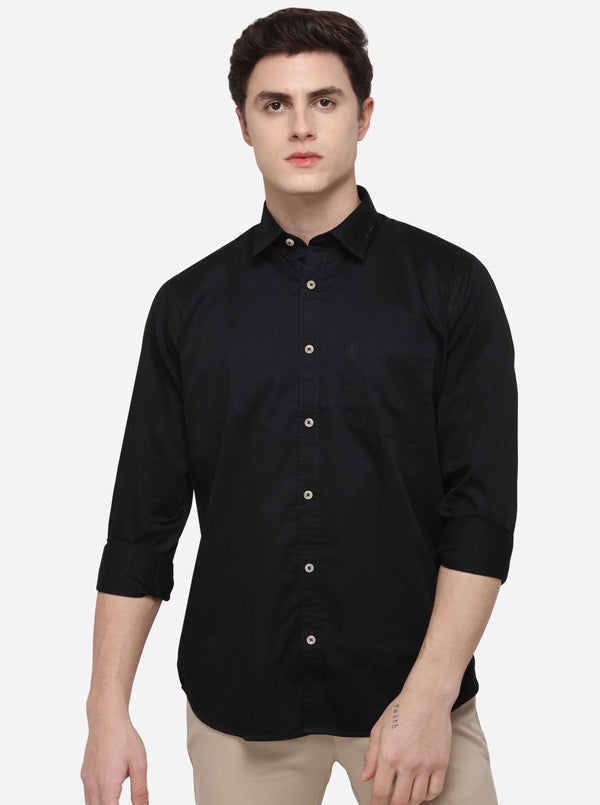 Black Regular Fit Solid Casual Shirt | Greenfibre