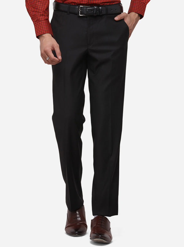Details: Look effortlessly stylish when you step out wearing these Checks black formal trousers. Made from Poly wool fabric, these slim mens trousers boasts of slim design and has all the essential features.Achieve a stylish makeover by donning these plain black trousers. Made to perfection, these slim fit trousers feature belt loops, 4 functional pockets, and single button closure and zip fly. It can be styled with beige shirt and moccasins. Walk in style by donning these men's formal trousers and let your style be your identity when you step out wearing this branded men's formal trousers.