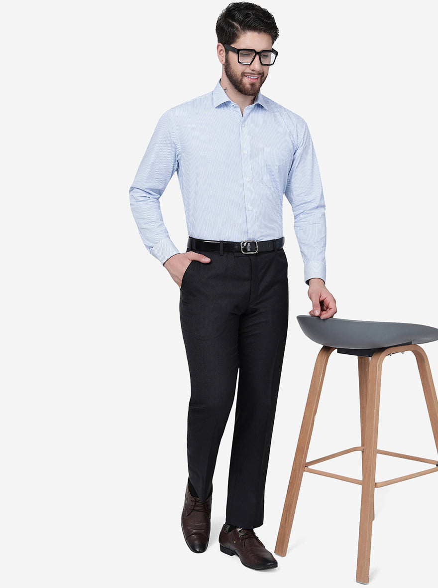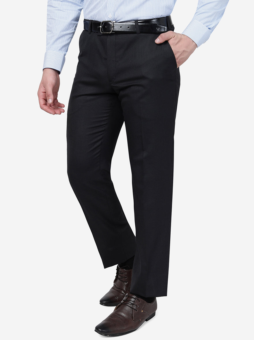 Black Solid Classic Fit Formal Trouser | JadeBlue
