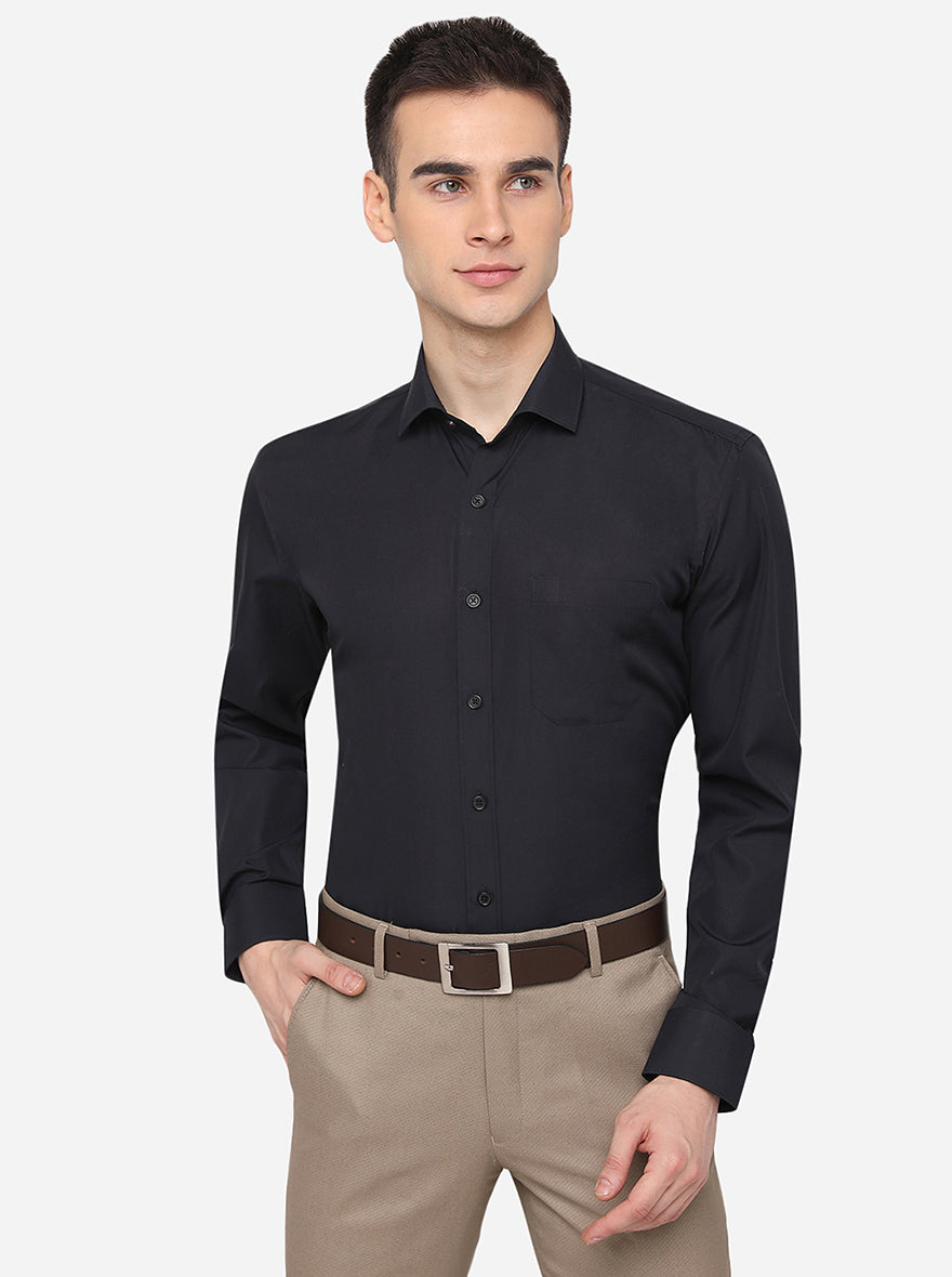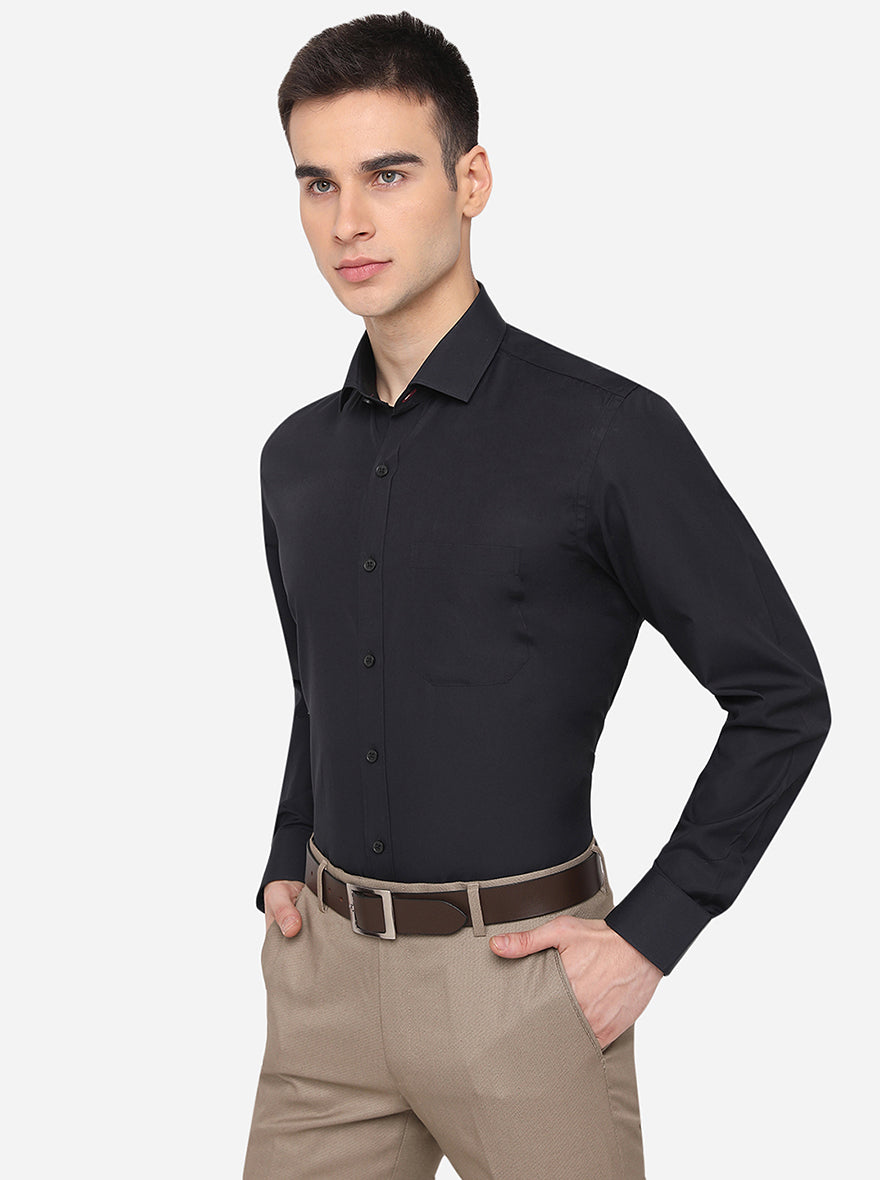 Black Solid Regular Fit Formal Shirt | JadeBlue