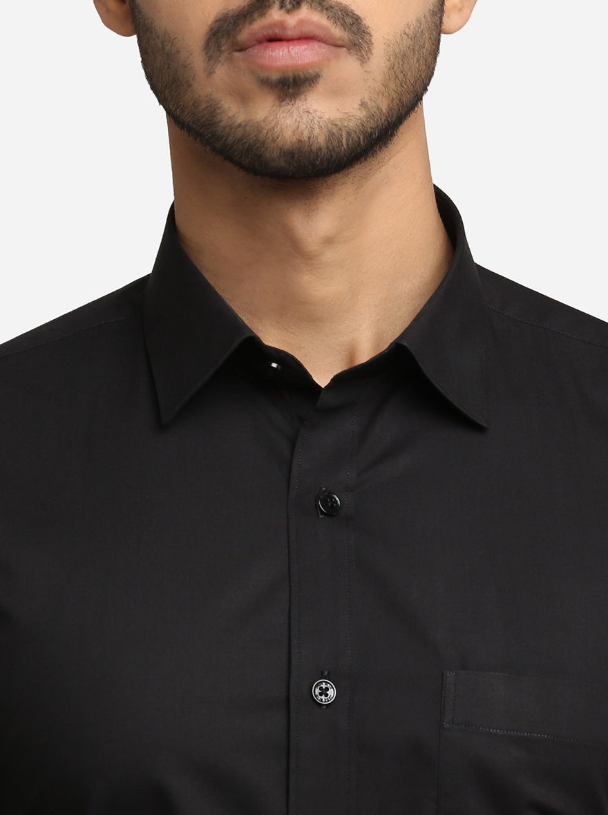 Black Solid Regular Fit Formal Shirt | JadeBlue