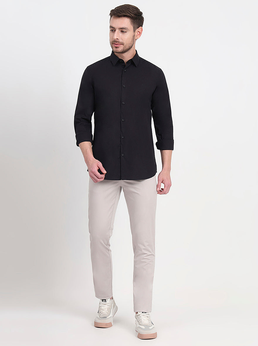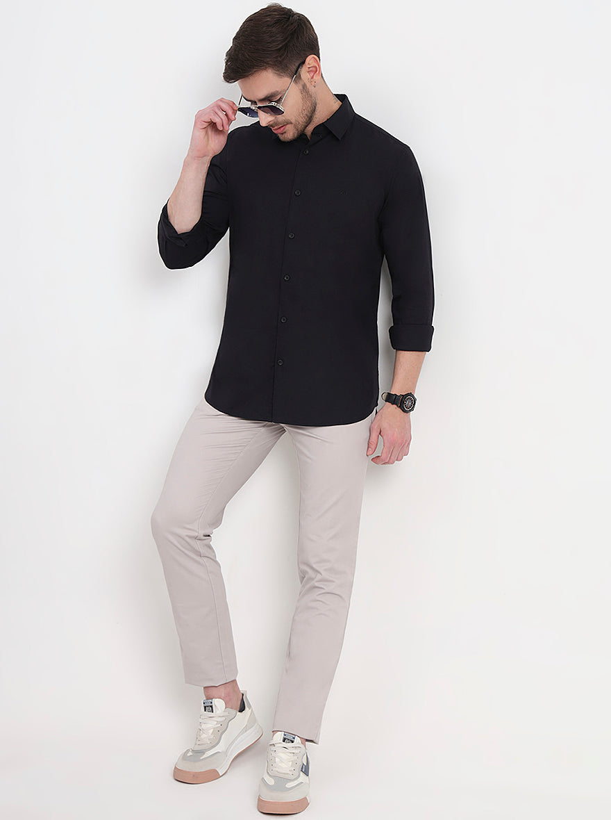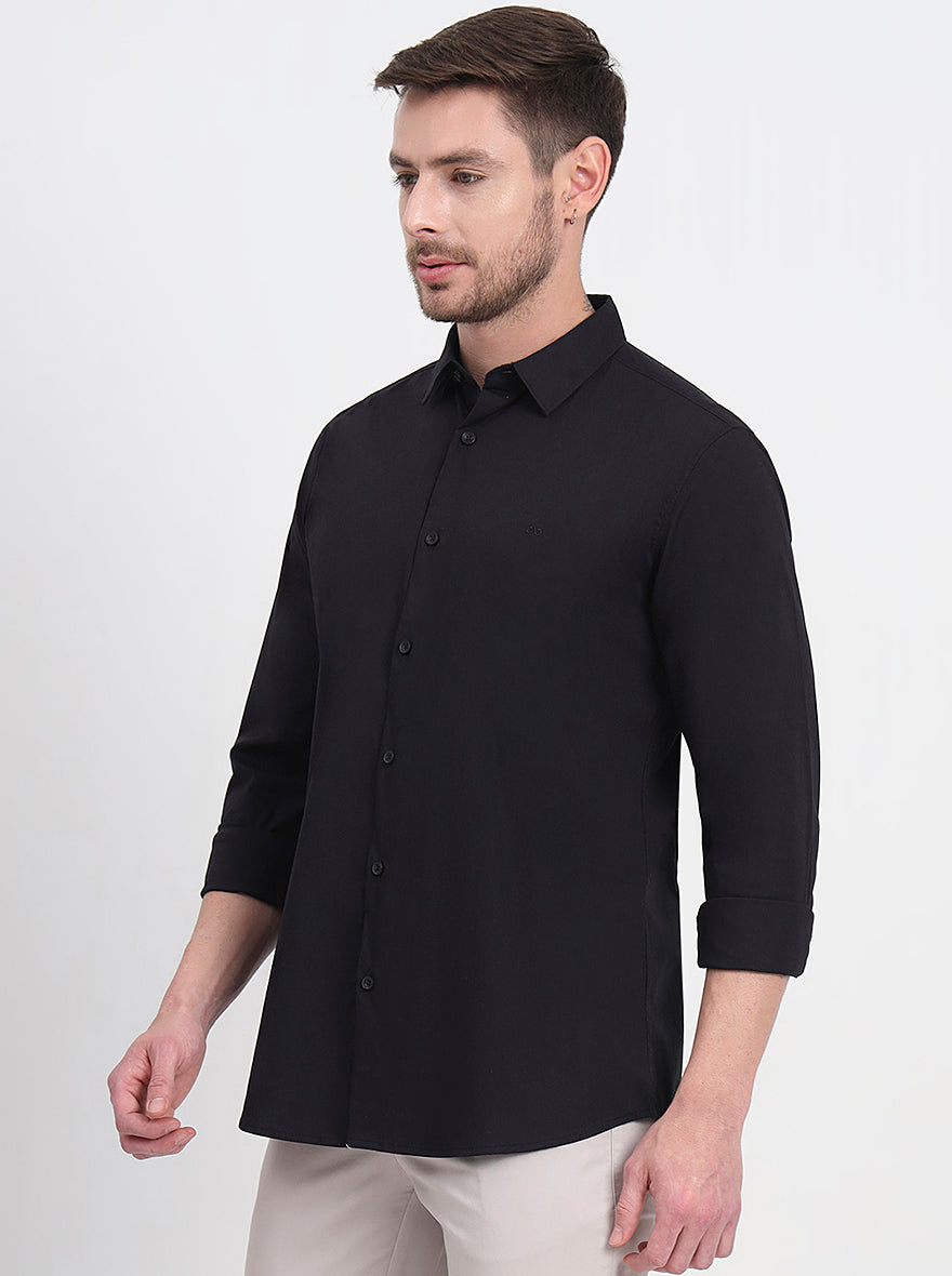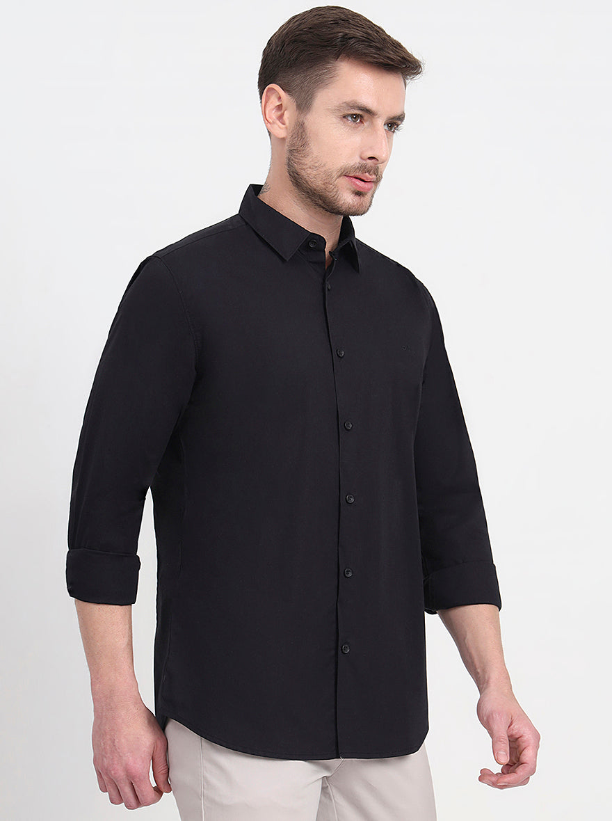 Black Solid Slim Fit Casual Shirt | JadeBlue