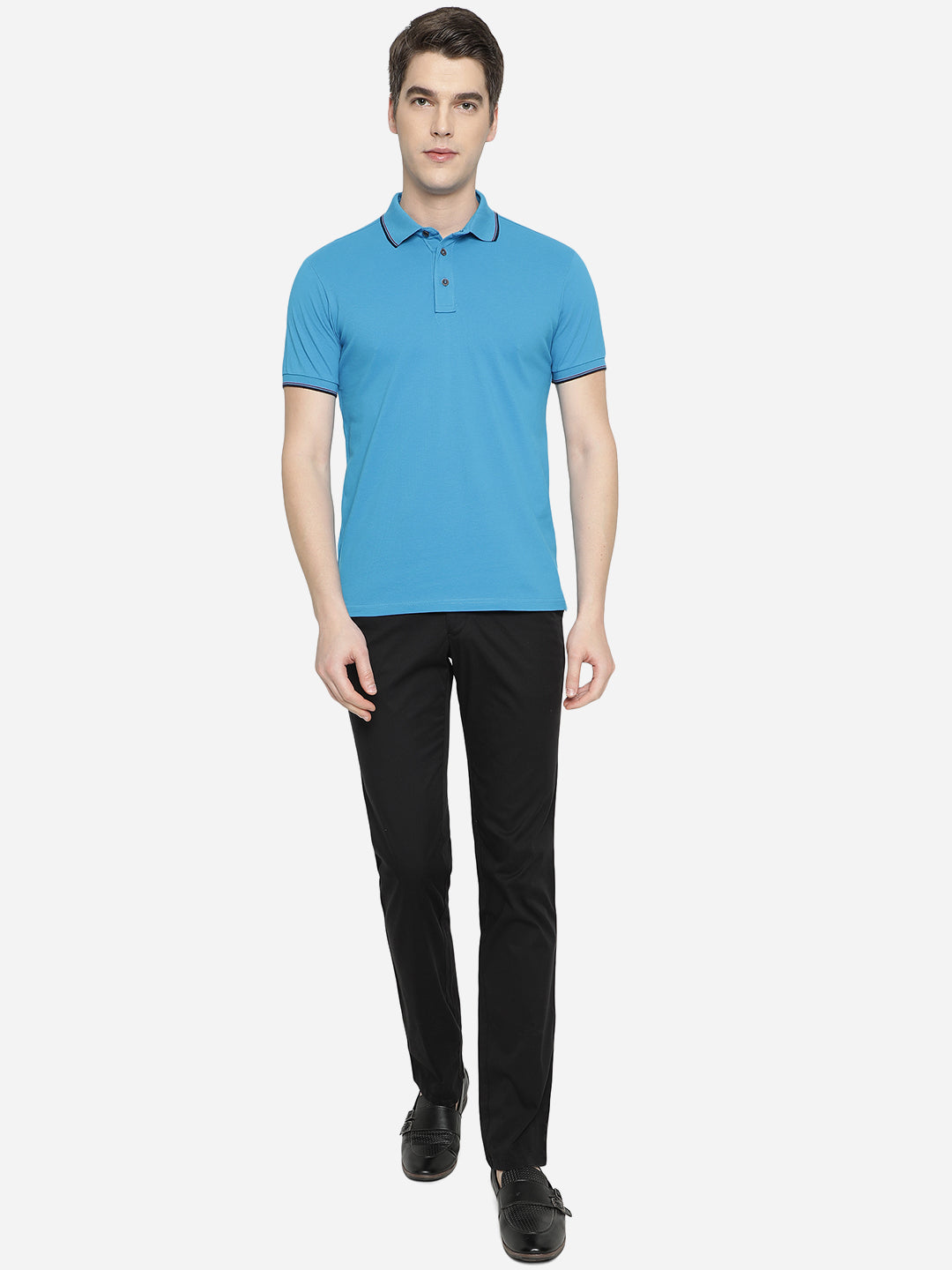 Details: Get set to stun everybody when you step out of your house wearing this solid black casual trouser by Greenfibre. Crafted to utmost perfection, this slim fit trouser is made from skin-friendly cotton fabric, which gives soft and smooth feeling to your skin. This trouser features single button closure, zip fly fastening, belt loops, 2 side slant pockets and 2 rear welt buttoned pockets, which lends this piece, a functional touch. Wear this trouser with light blue polo T-shirt, belt and moccasins for a perfect casual look.