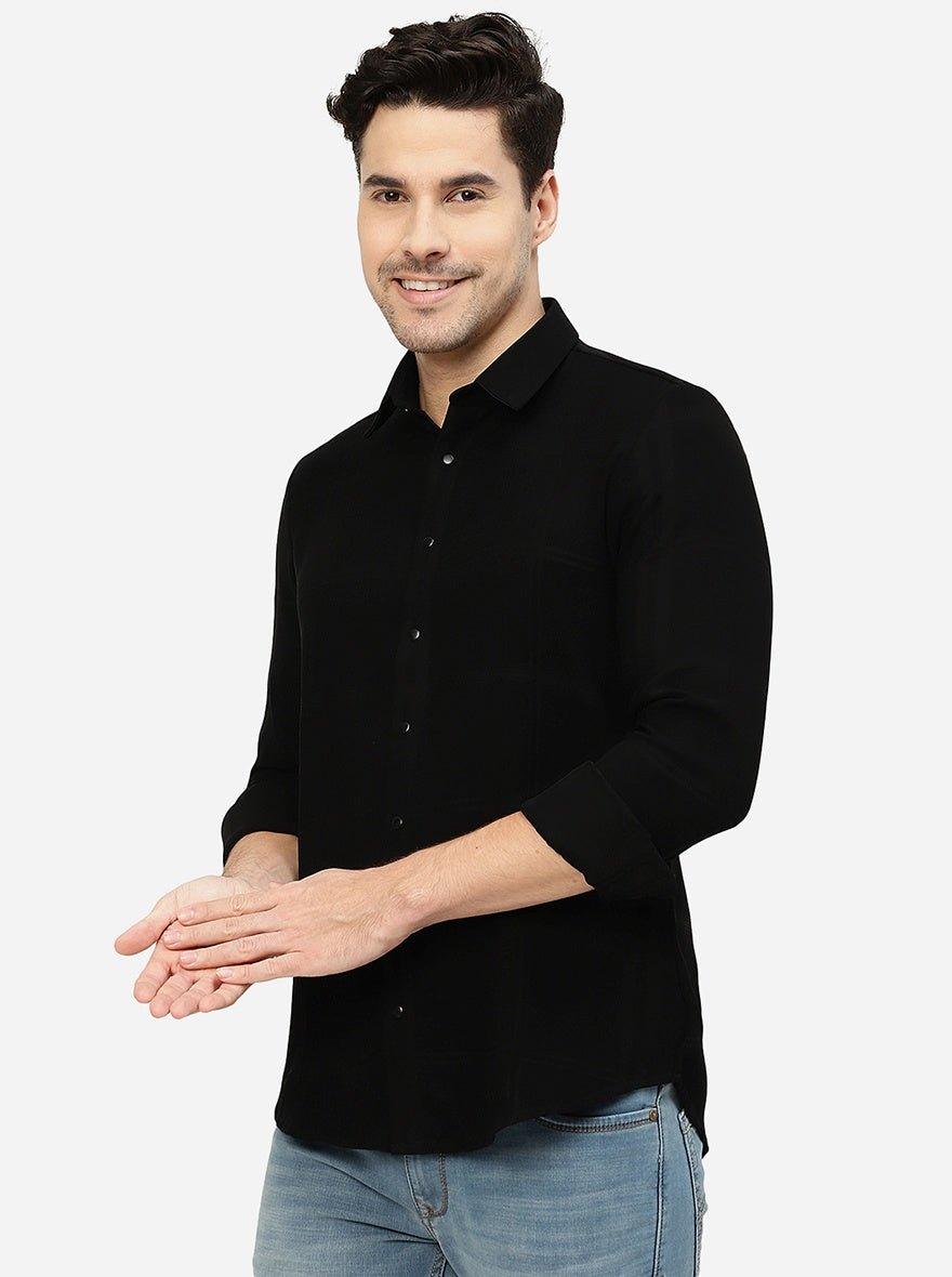 Black Solid Slim Fit Party Wear Shirt | JB Studio