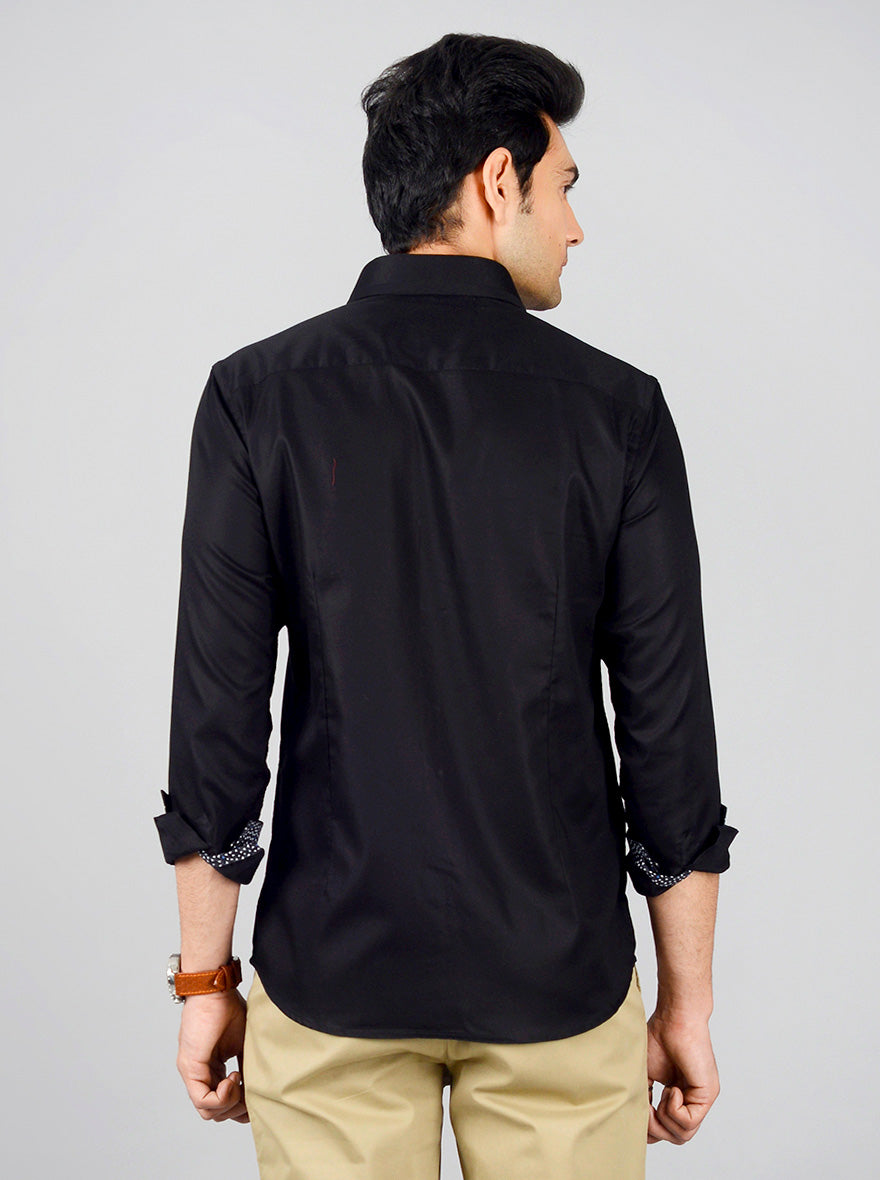 Black Solid Slim Fit Party Wear Shirt | JB Studio