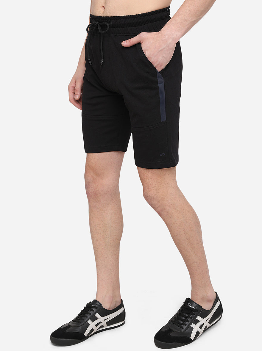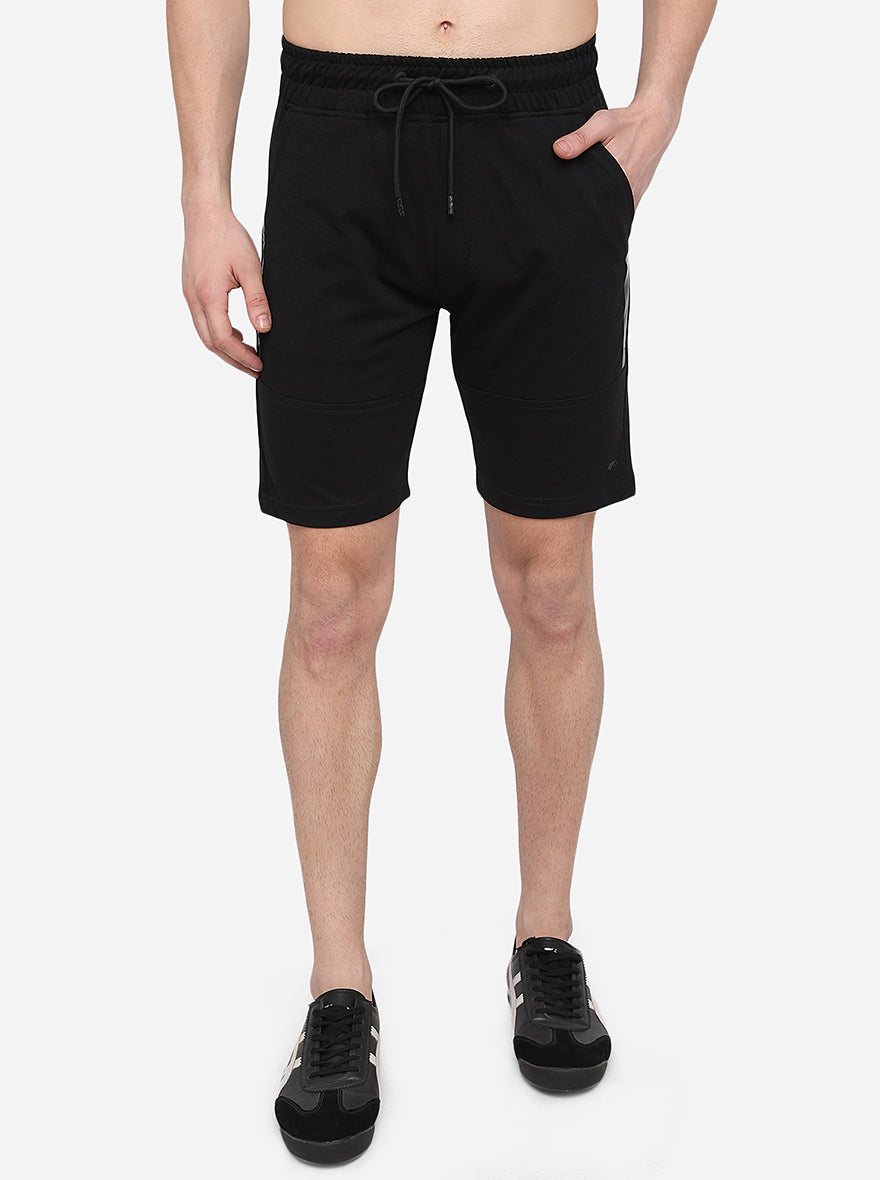 Details: Enjoy your netflix time at home while wearing this perfect pair of Black shorts from the latest collection of JadeBlue. It features an elasticated waistband with a tie-on to provide with proper fitting. It offers a slim fit and is adorned with a solid pattern. It comes with two pockets on the side and has a length right above knees. Crafted with cotton blend, it assures you the best of comfort during long hours. Best suitable for casual wear. Match it with a t-shirt and slip-ons to complete the look.
